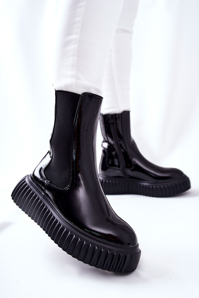 Have you ever dreamt about patent platform boots? Now you have a chance to make your dreams come true! Workers have been made of patent eco leather. High upper and a zip for easy putting on. Thick platform emphasizes their style and additionally guarantees perfect insulation from the ground, making these boots even more practical. Warmed inside with a shoe blanket. Please refer to the size chart when choosing your size.
