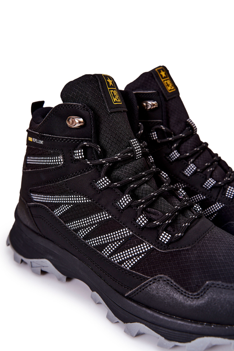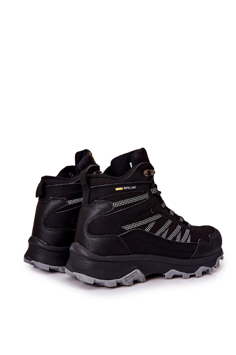 High boots for men great for longer hikes. They have an anti-slip sole. Made with a hydrophobic fabric upper that protects the footwear from getting wet. Lace up boots. Complete your wardrobe with this model and you certainly won't regret it! Check also our other offers of men's shoes! Follow the size chart when choosing the size.