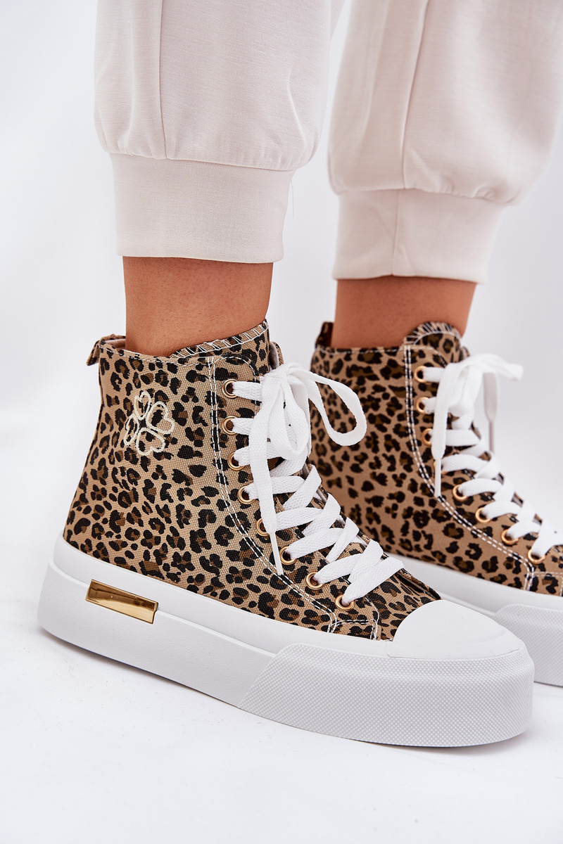 High Women Sneakers With Leopard Print On Platform Brown Laviriona