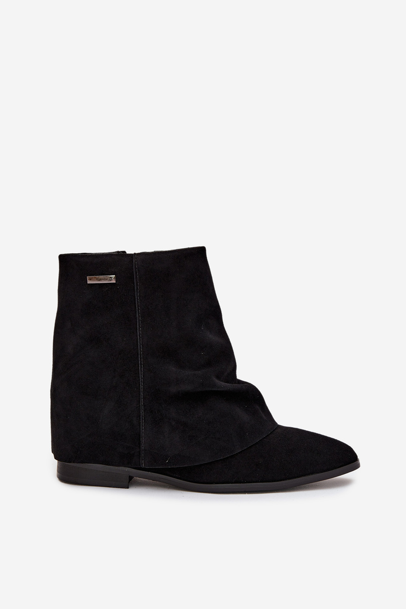 Insulated ankle boots with hidden wedge with rolled shaft eco suede black Tavella