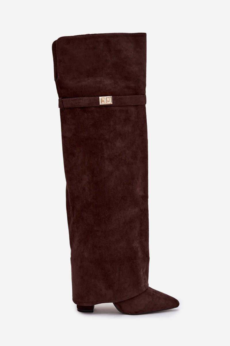 Insulated boots with rolled top Over the knee block heel chocolate Serelle