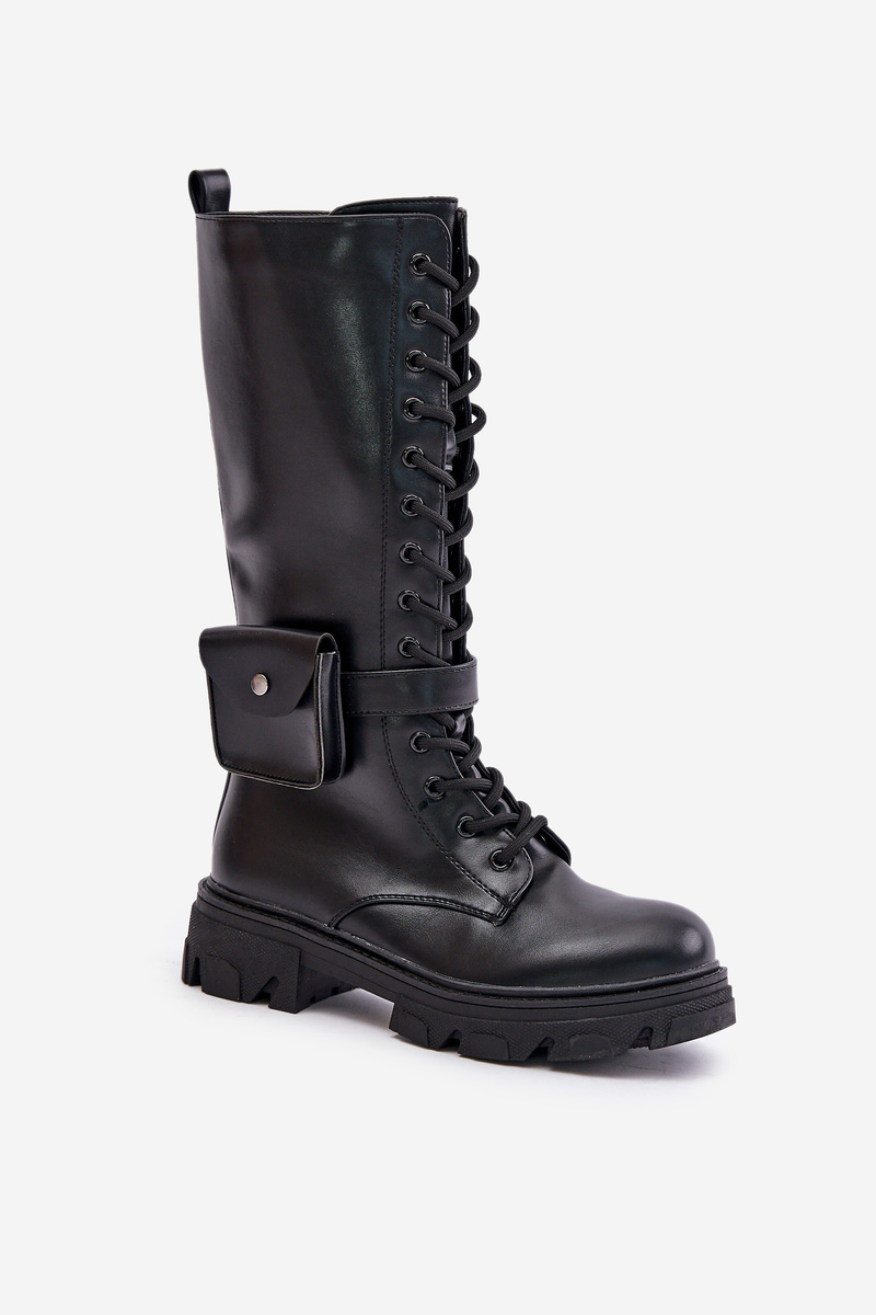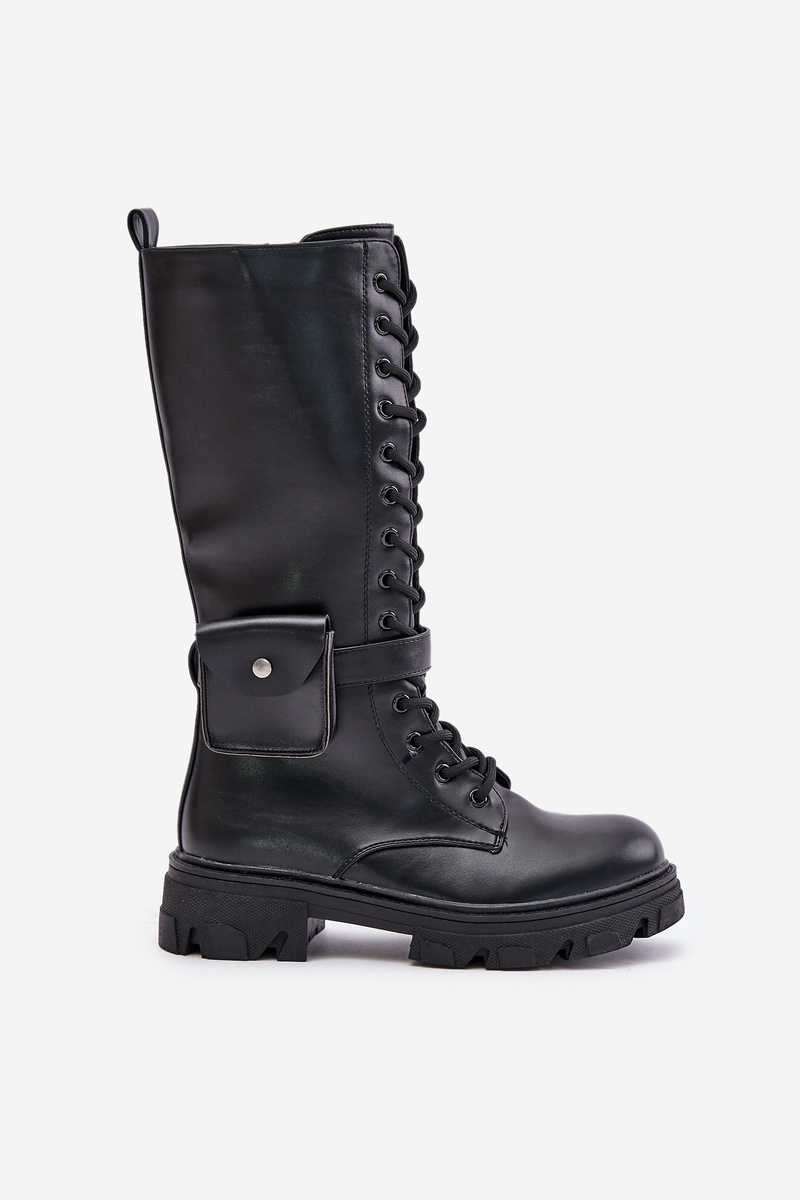 Insulated combat boots up to mid-calf with pouch black Temisza