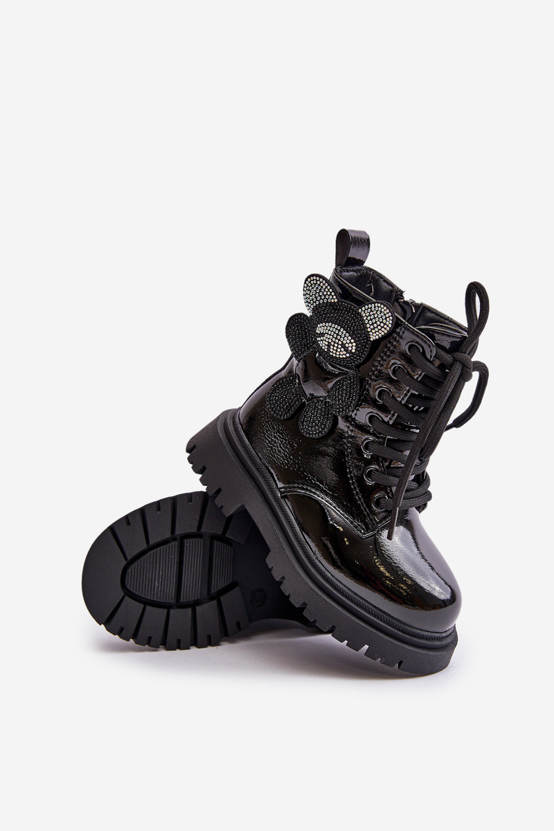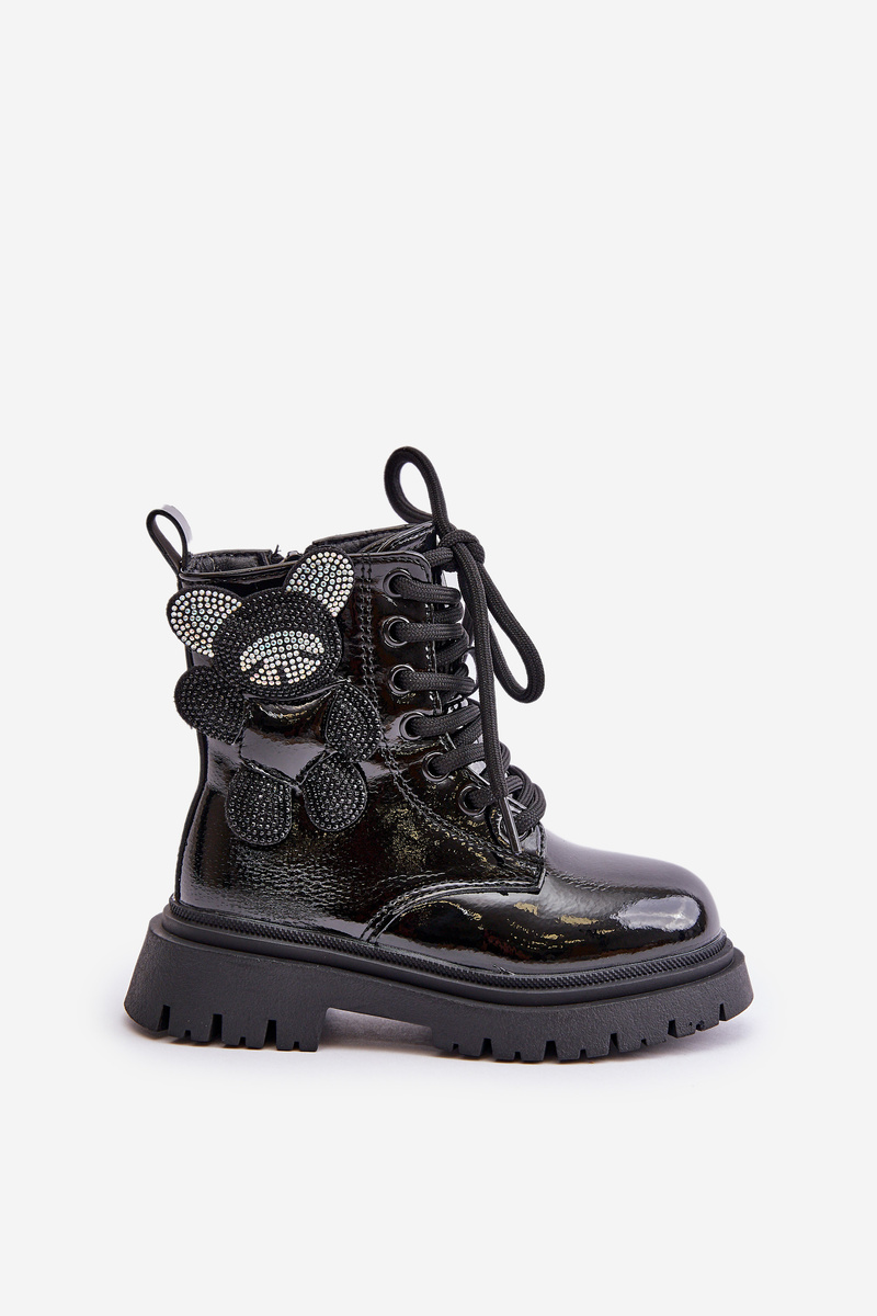 Insulated Girls' Boots With Teddy Bear Zippered Black Lacquered Relobia