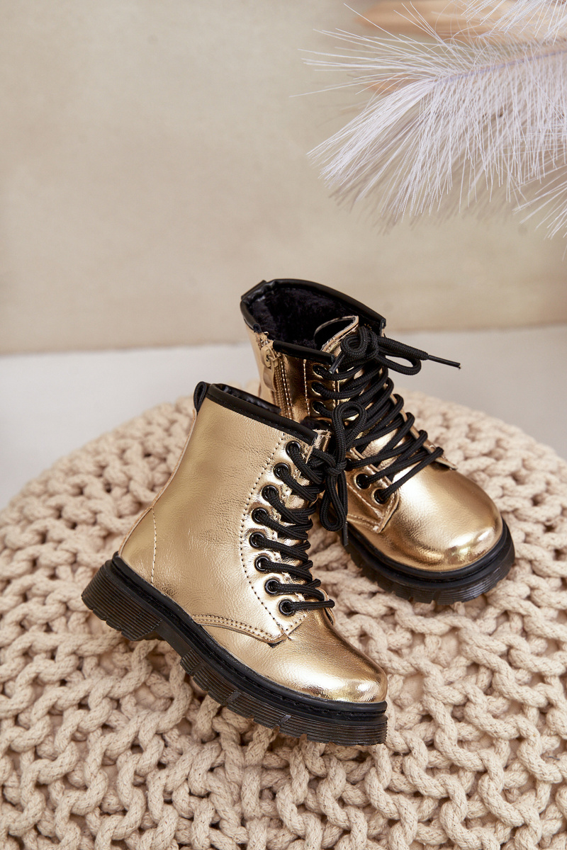 Insulated Girls Patent Boots With Zipper Gold Novita