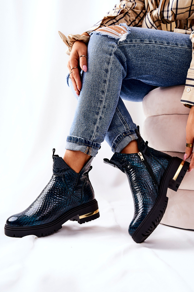 Insulated leather boots Crocodile Green Tanya