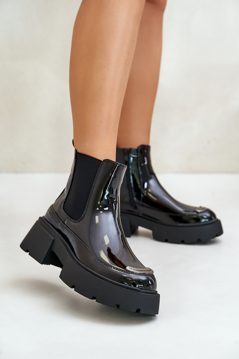 Insulated Patent Ankle Boots With Zip Black Jesschris