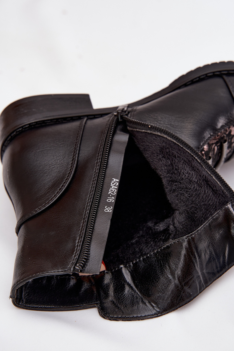 Boots by Jezzi made of eco leather that combine style with comfort. Set on a flat heel, with rounded toes, they provide everyday wearing comfort. The model is fastened with a zipper, making it easy to put on and take off. The interior is insulated with footwear fleece, ideal for cooler days. These boots are a great choice for autumn and winter outfits. When choosing a size, please refer to the size chart.