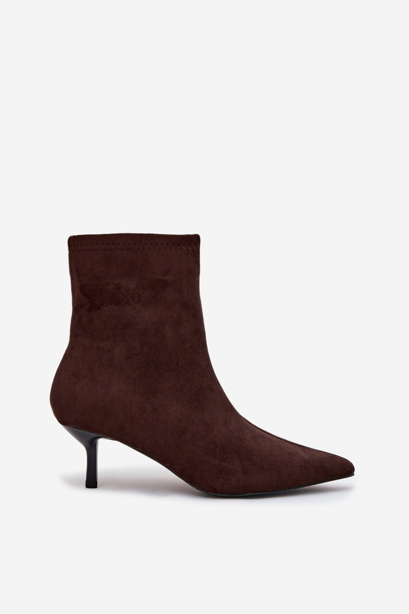 Insulated Women's Ankle Boots on Heel Eco Suede Chocolate Belisse