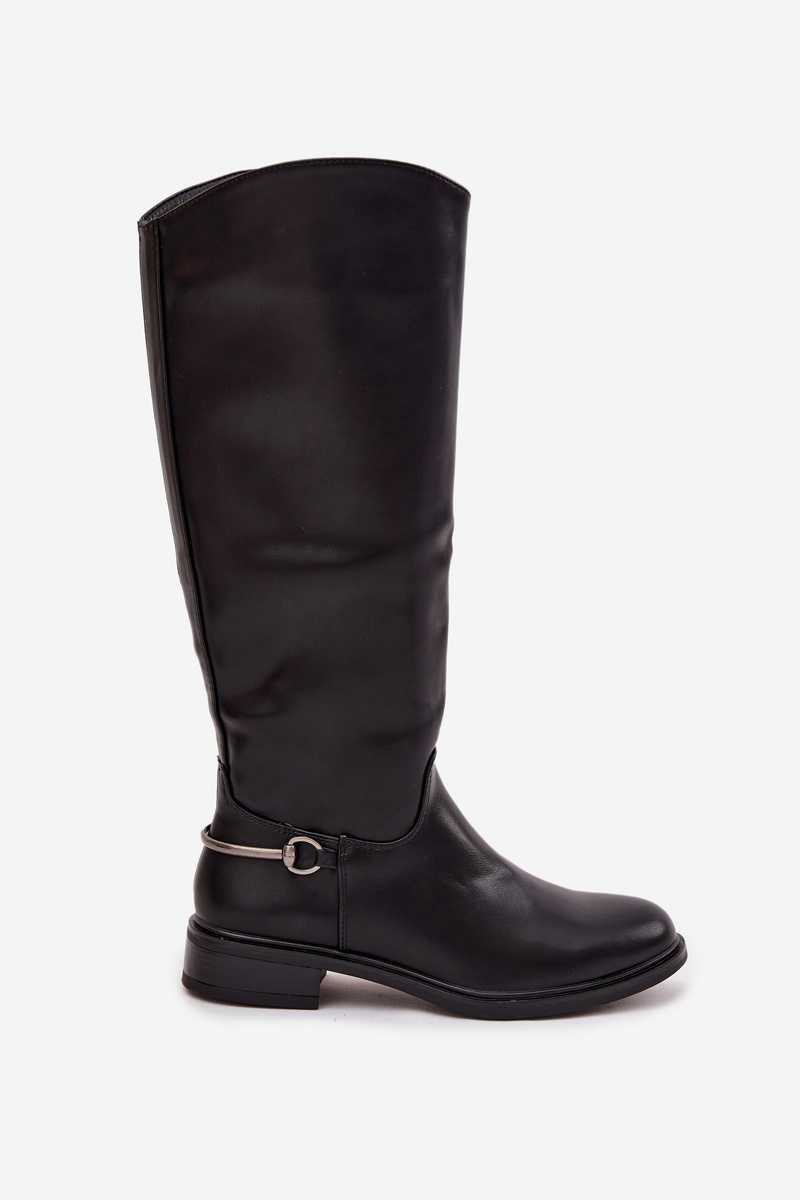 Insulated Women's Boots with Flat Heel Decorative Element Black Renaya