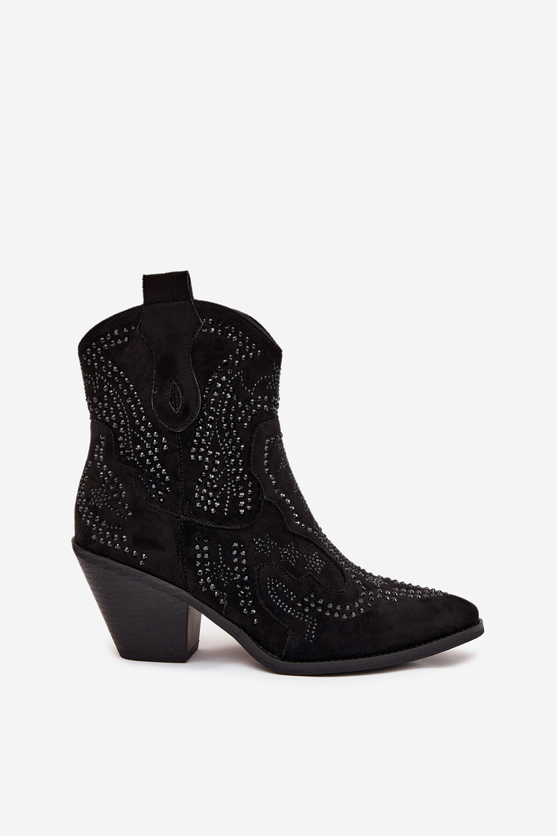 Insulated Women's Cowboy Ankle Boots With Decoration Black Lelira