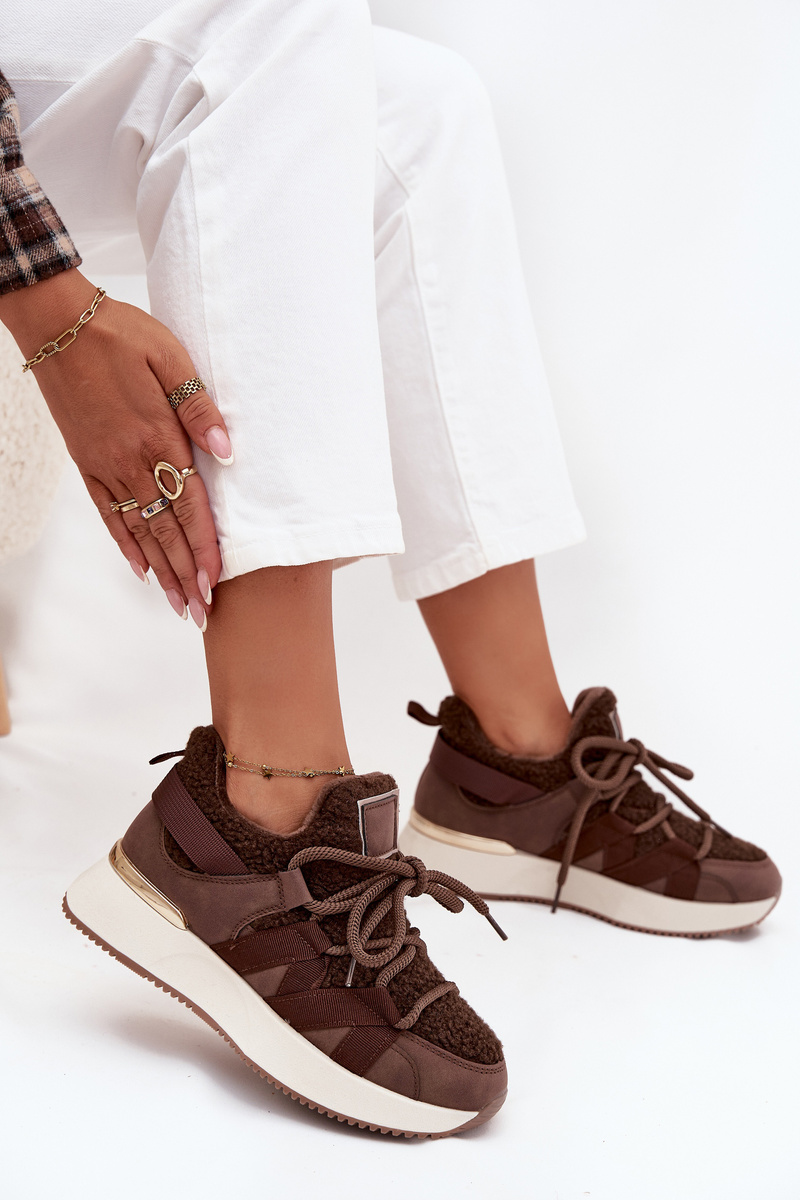 Women's sneakers made from a combination of eco-leather and shearling are the perfect choice for cooler days. The soft insulated interior provides comfort and warmth, and the slip-on style with additional laces guarantees convenience and a good fit. A mirror-like element placed at the back adds a stylish touch, attracting attention and giving a modern accent. This model combines the comfort of sneakers with a fashionable winter finish – ideal for everyday outfits. Please refer to the size chart when choosing your size. When choosing a size, please refer to the size chart.