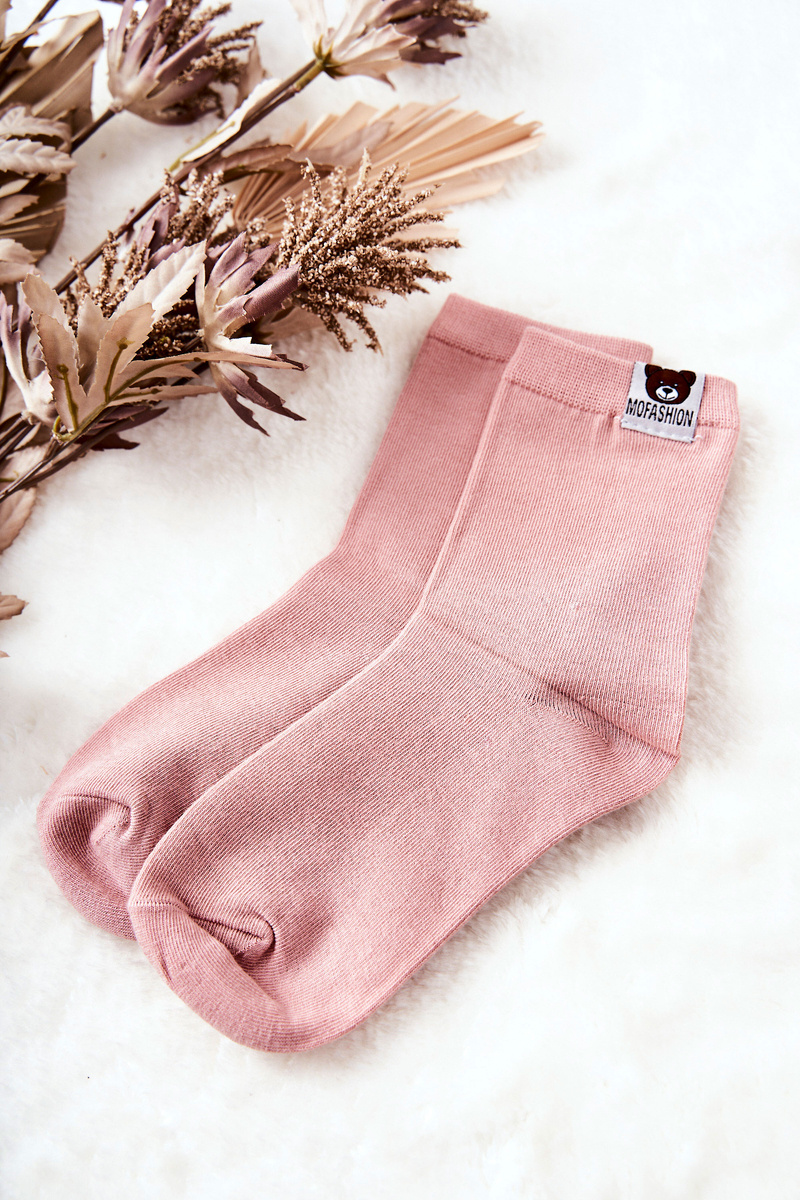 Baby socks are made mainly of cotton. They have a delicate ribbing at the top and sewn-in material with a teddy bear motif. Available in several sizes and colours.