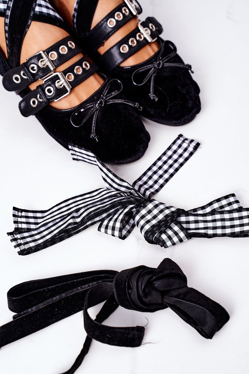 Delicate Lu Boo ballerinas. An interesting element are ribbons tied around the ankle. Shoes made of velor. Be sure to check out our entire collection of ballerinas! When choosing a size, please use the size chart. The ballerinas have two types of ribbons included, plain and checked.