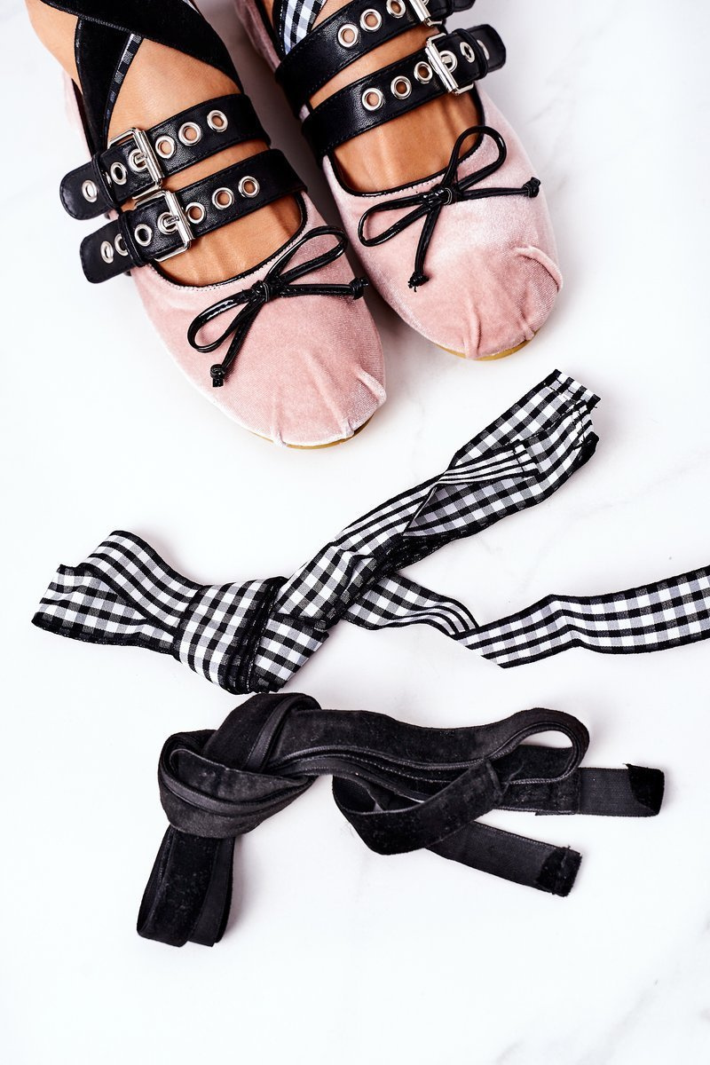 Delicate Lu Boo ballerinas. An interesting element are ribbons tied around the ankle. Shoes made of velor. Be sure to check out our entire collection of ballerinas! When choosing a size, please use the size chart. The ballerinas have two types of ribbons included, plain and checked.