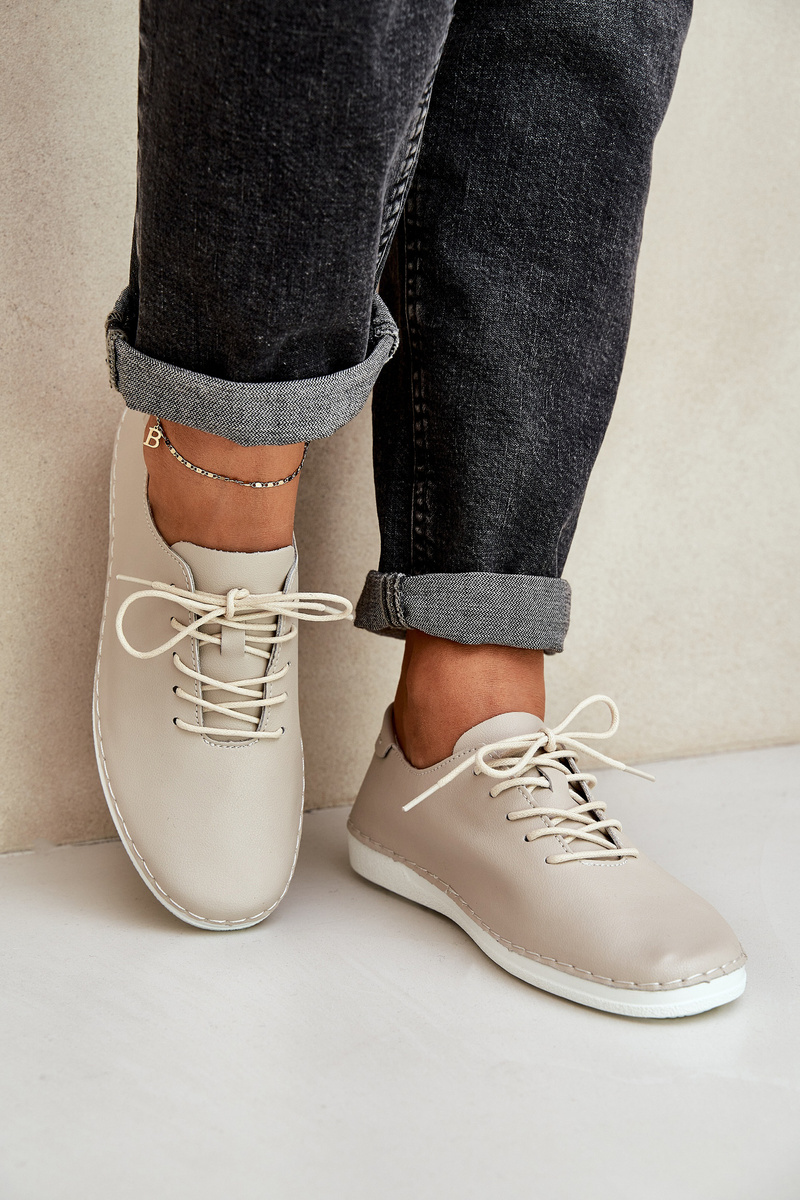 Laced Shoes Made Of Natural Leather D&A LR51-645 Beige