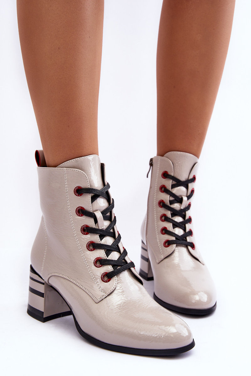 Lacquered Boots on Heel SBarski MR870-49 Light Gray