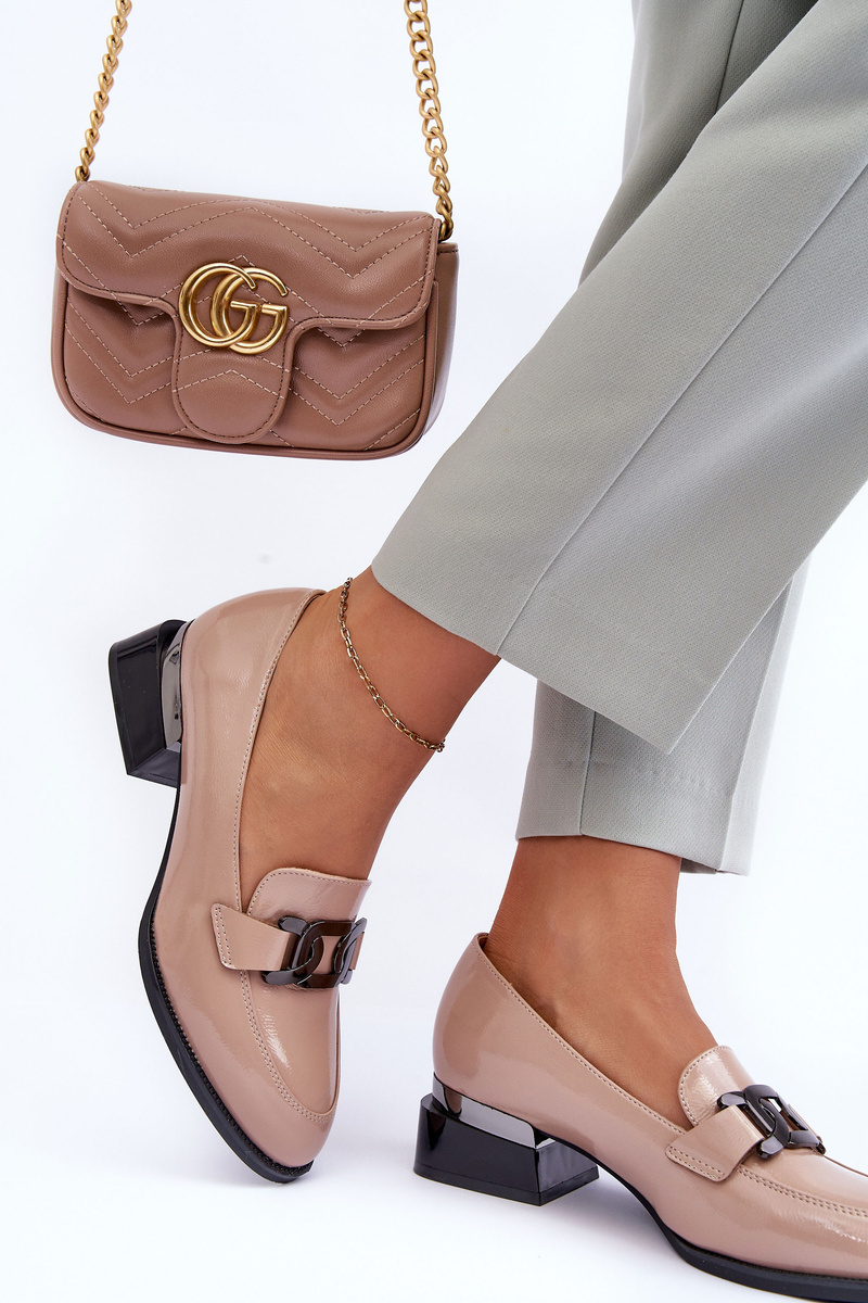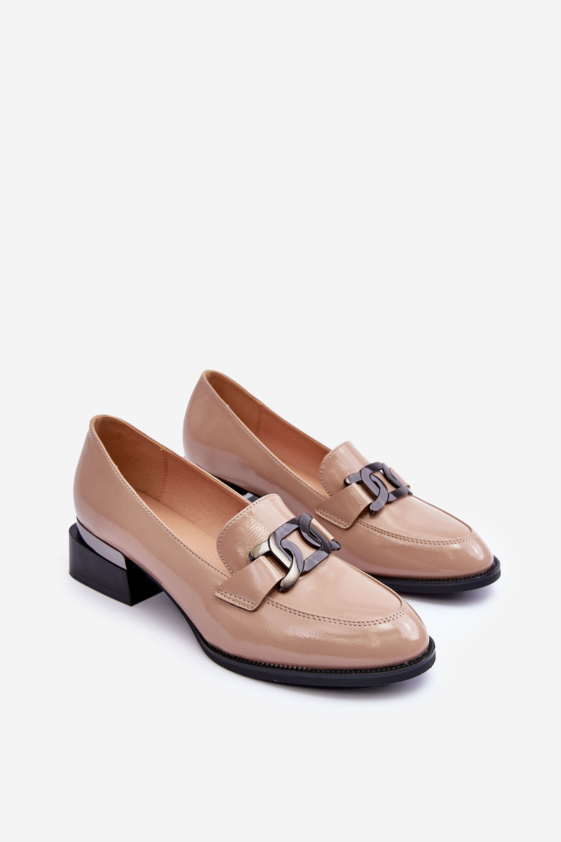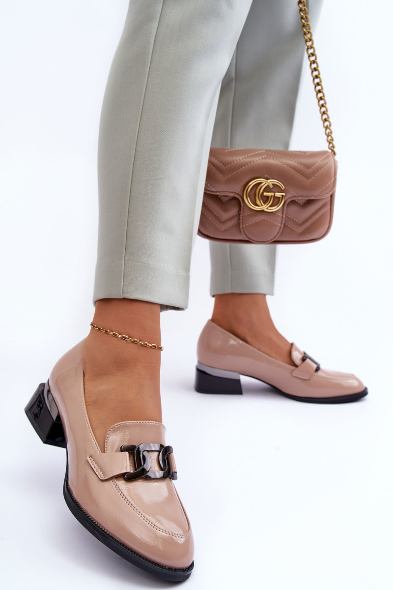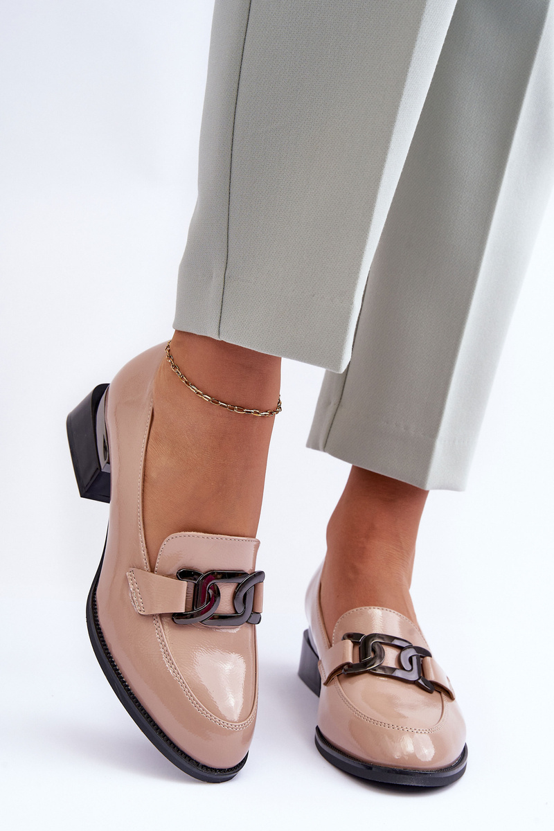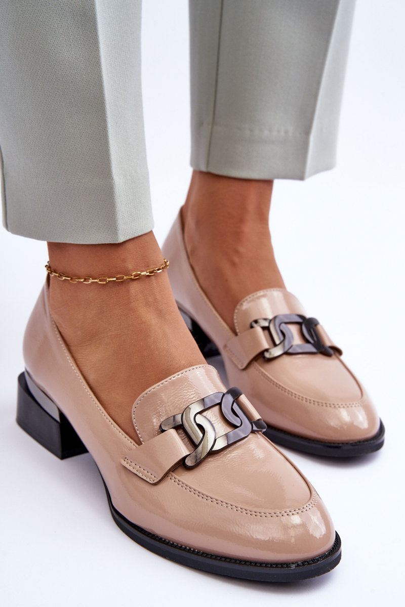 Lacquered Moccasins Heeled Shoes Beige Sakina
