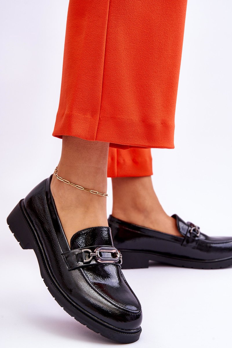 Lacquered Moccasins Loafers With Decoration Black Maura
