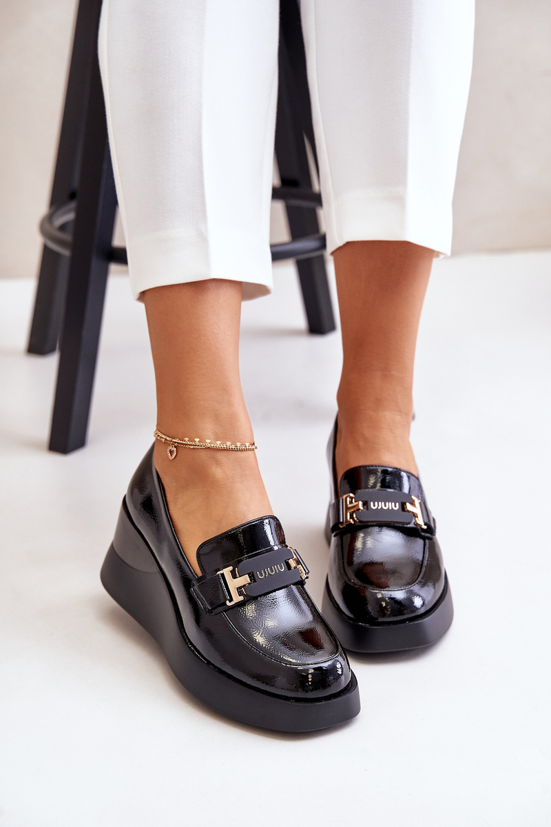 Lacquered Wedge Moccasins Black Vinceza 58337