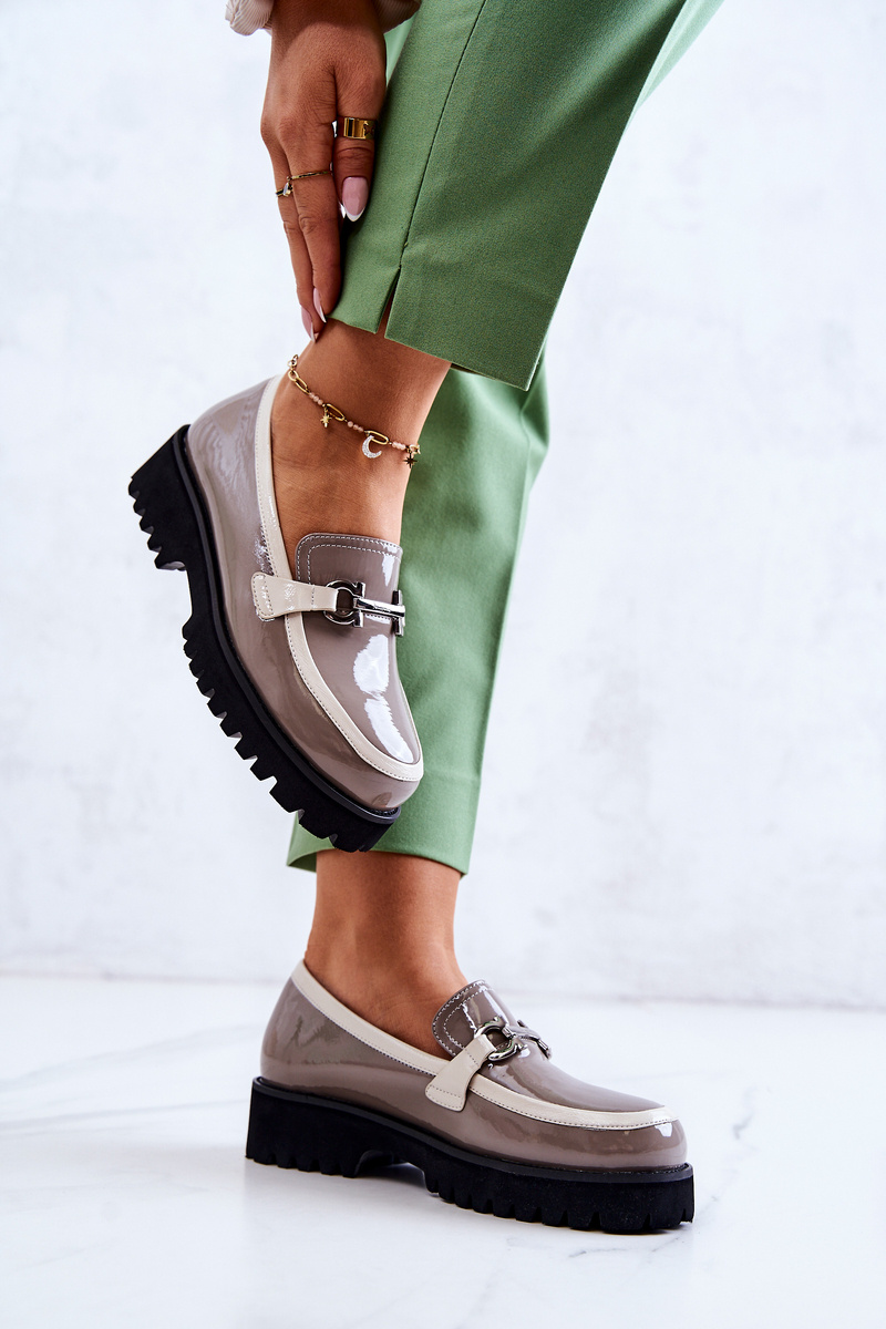 Do you dream about new shoes? This model is designed with the upcoming fashion trends in mind! Loafer-style patent leather shoes. They have a rounded toe and a metal ornament. The insole made of natural leather is very comfortable to use. The massive sole with a flat heel is made of plastic. This great model is waiting just for you! When choosing a size, please use the size chart.