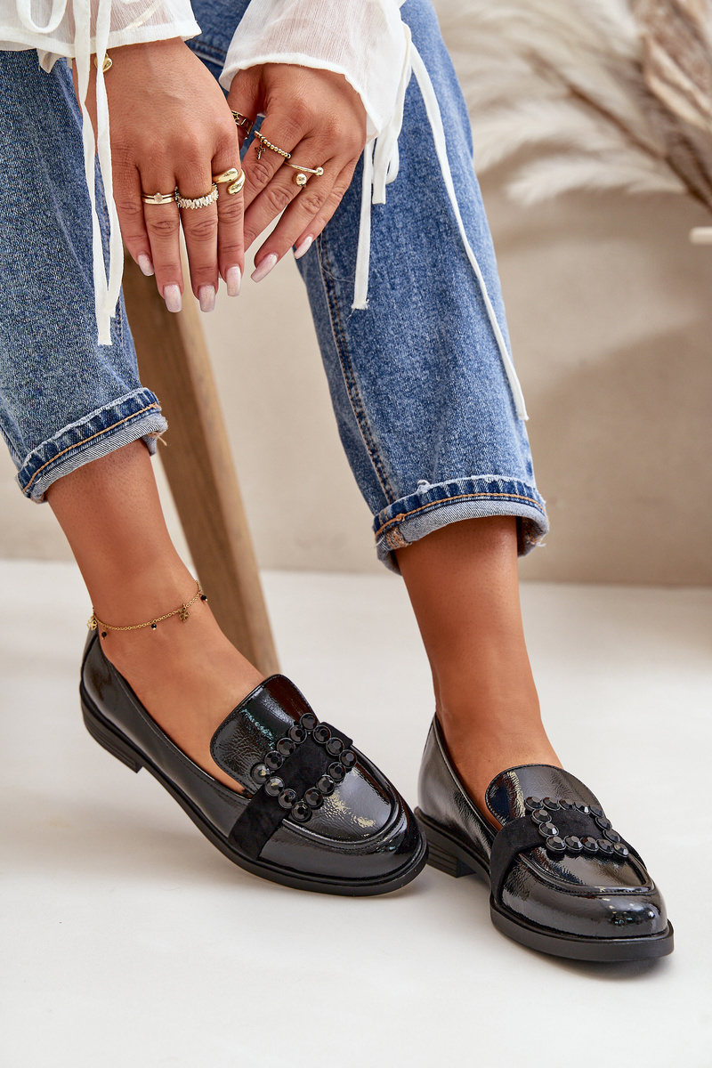 Lacquered Women's Moccasins With Decoration Black Vinceza 58389