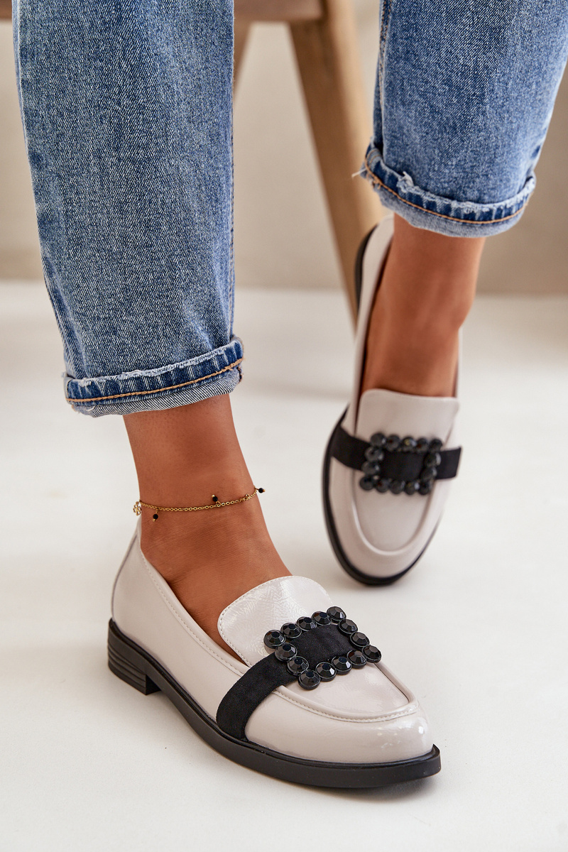 Lacquered Women's Moccasins With Decoration Light Gray Vinceza 58389