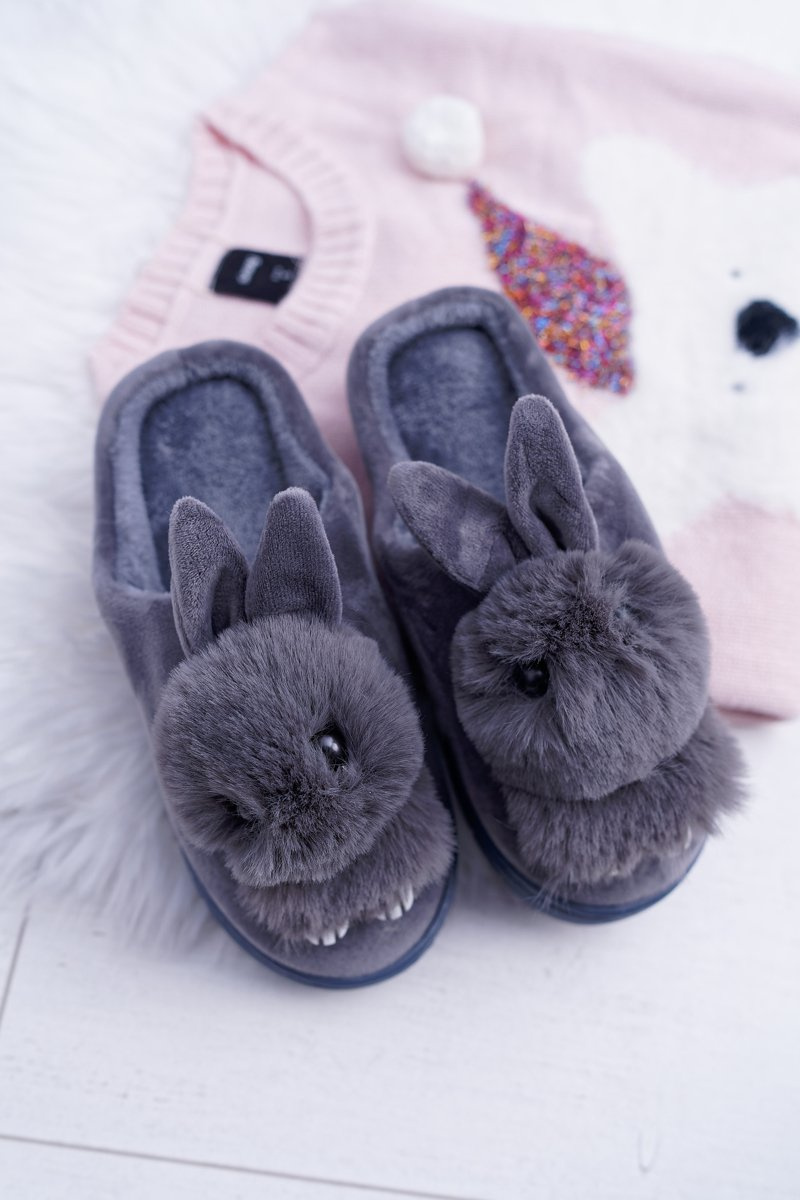 Ladies' Classic Slippers with Rabbit Grey Howi