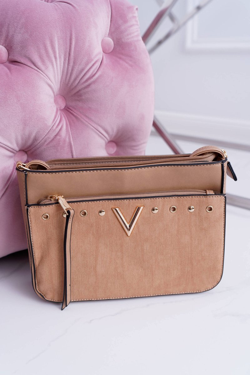 A handbag is an indispensable element of women's styling. It has to look beautiful and accommodate all our little things :) Classic handbag, available in several great colors. Two zippered pockets. The decoration in the form of a gold letter V gives it a tasteful style. Inside the larger pocket you will find space for your phone and documents.