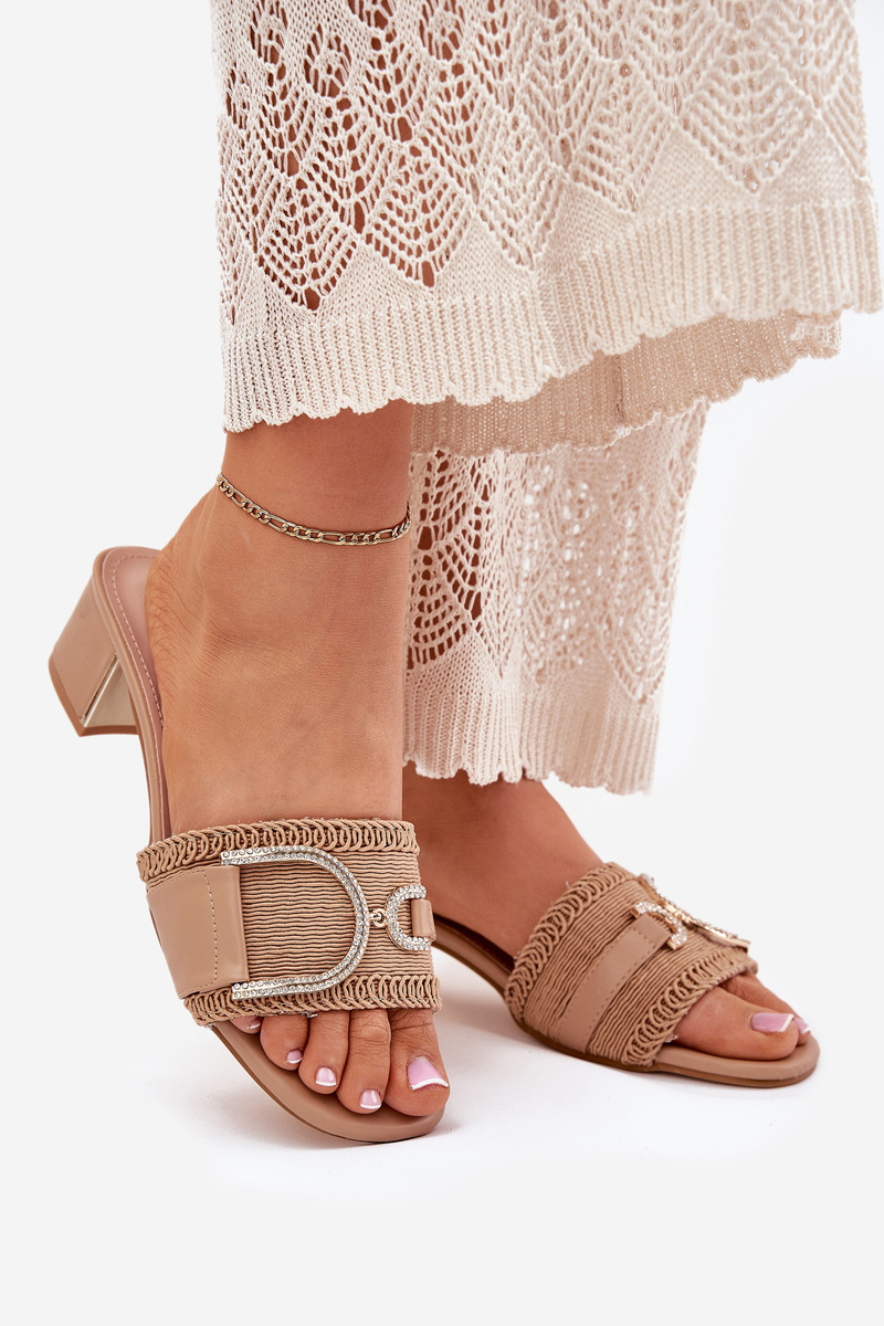 Women's block-heeled slides are an elegant choice for warm days. They feature subtle decorative details with zirconia at the front, giving them a unique sparkle. The eco-leather insole ensures comfort all day long. Perfect for summer outfits, they combine comfort with a fashionable look and are ideal for both everyday wear and special occasions. When choosing a size, please refer to the size chart.