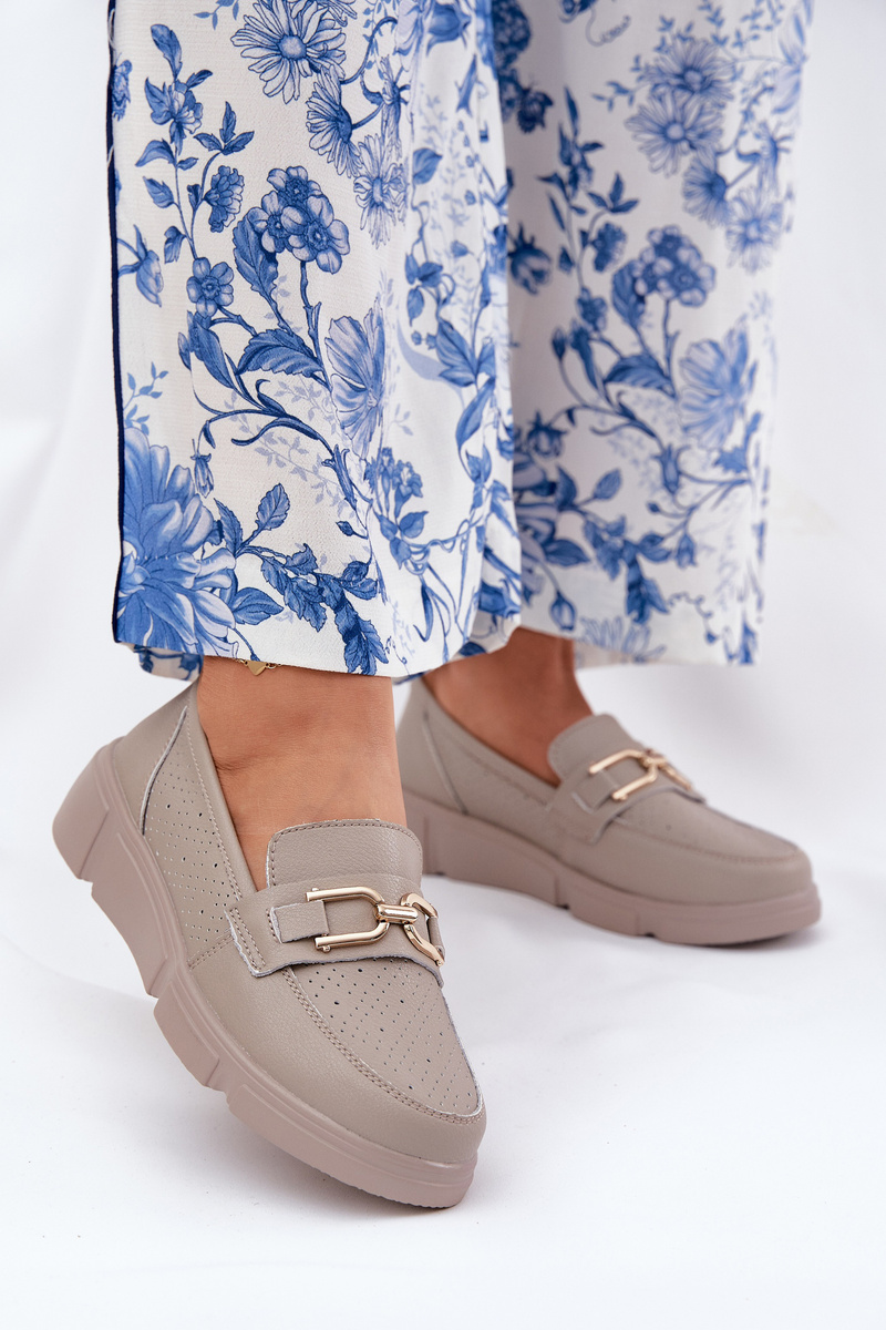 Ladies Leather Moccasins with Golden Detail Ciemnobeżowe Vinceza 88007
