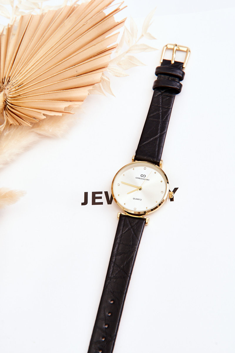 The classic women's watch is made of a combination of eco leather and stainless steel. Round case with a dial in a solid color, on which there are decorative rhinestones imitating zircons. This model has an adjustable strap with a buckle. The perfect addition to many styles!