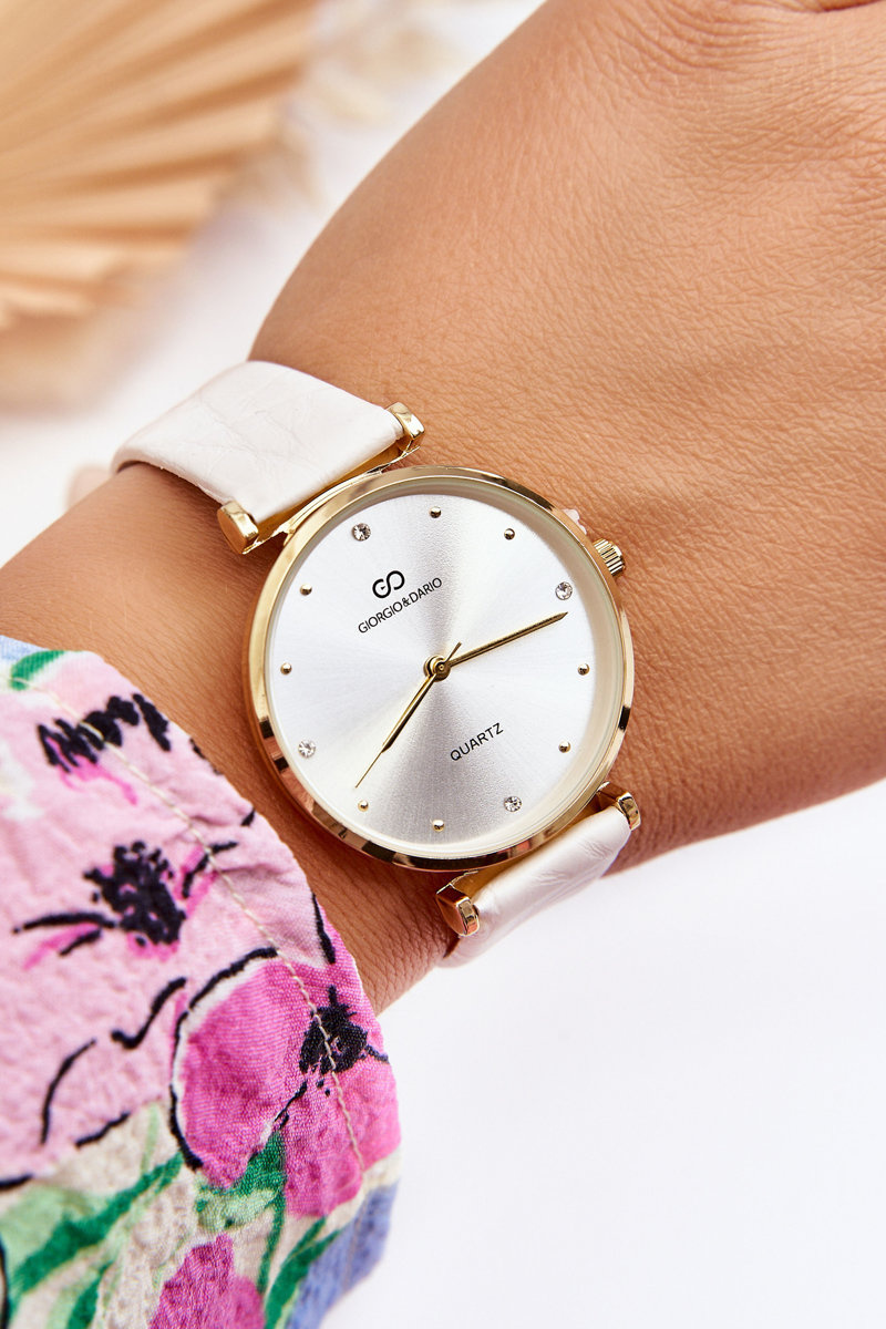 The classic women's watch is made of a combination of eco leather and stainless steel. Round case with a dial in a solid color, on which there are decorative rhinestones imitating zircons. This model has an adjustable strap with a buckle. The perfect addition to many styles!