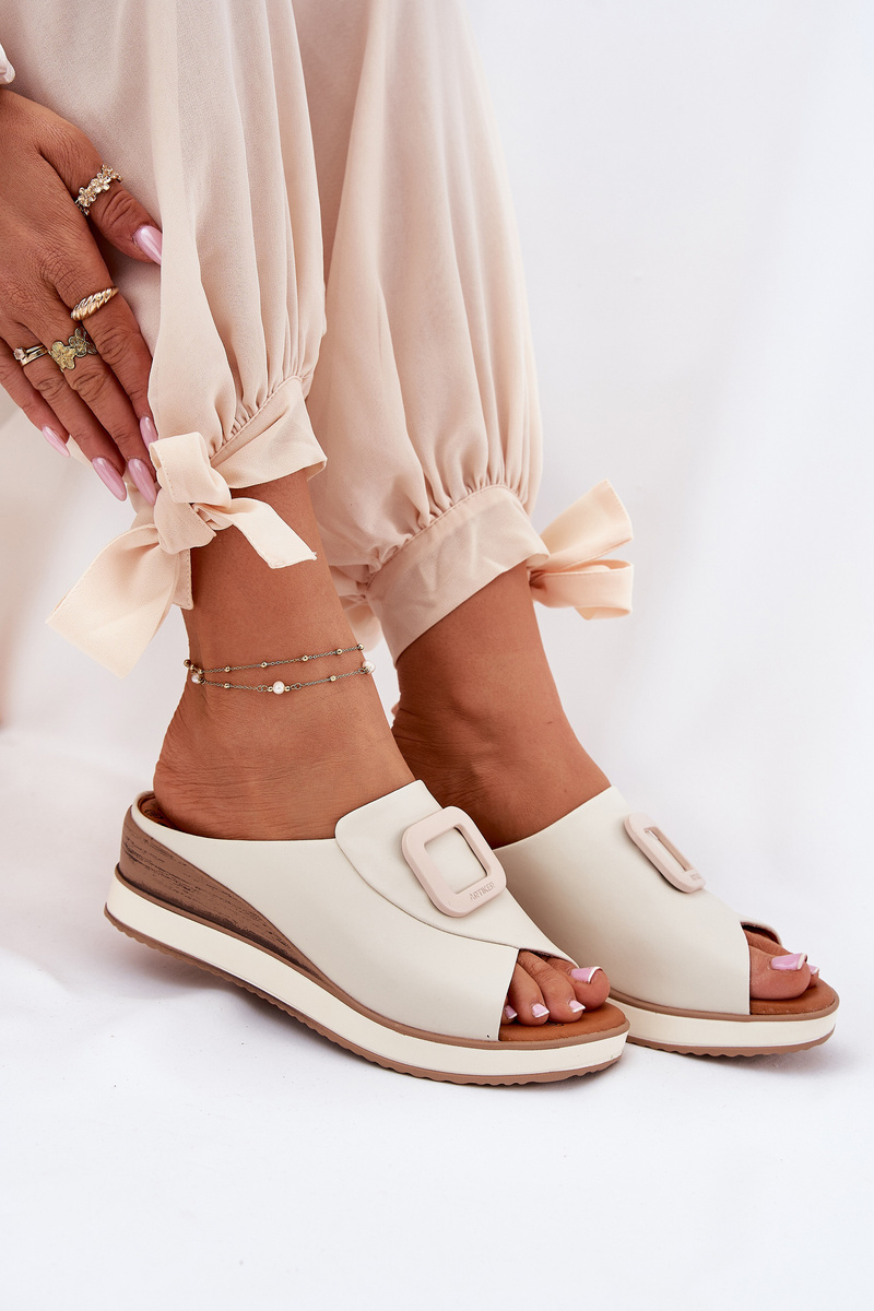 Ladies Leather Wedge Sandals Artiker Light Beige 56C2145