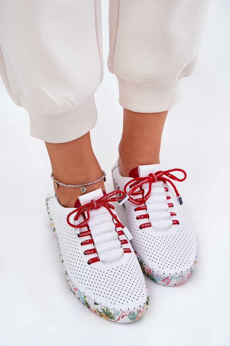 Women's loafers made of natural leather. Set on a patterned platform with a delicate wedge, they combine comfort with trendy design. The rounded toes provide comfort all day long, and the laced model allows for a perfect fit to the foot. The soft insole further enhances wearing comfort. These loafers will be an excellent choice for everyday styles, adding subtle elegance and lightness to them. When choosing a size, please refer to the size chart.