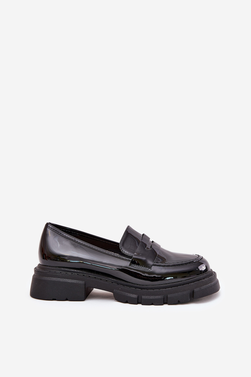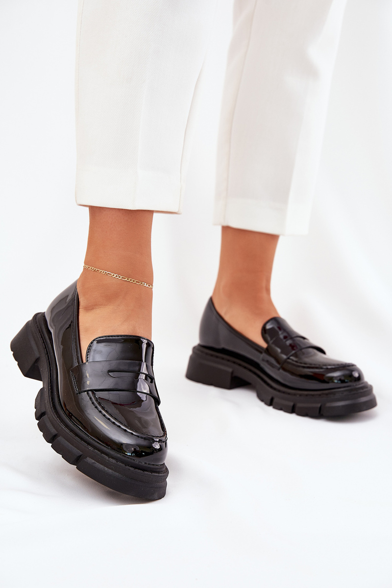 Moccasins made of eco-leather, combining classic style with a modern look. Set on a platform and flat heel, they provide comfort and stability. The model features rounded toes and a strap with a cutout that gives them a unique character. Ideal for everyday styling! When choosing a size, please refer to the size chart.
