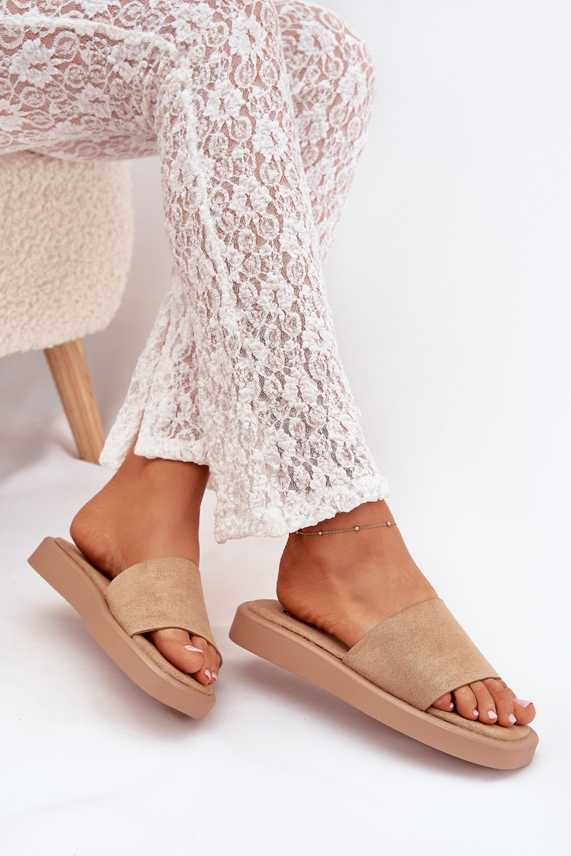 Ladies Platform Slippers Made Of Eco Suede Dark Beige Jorina