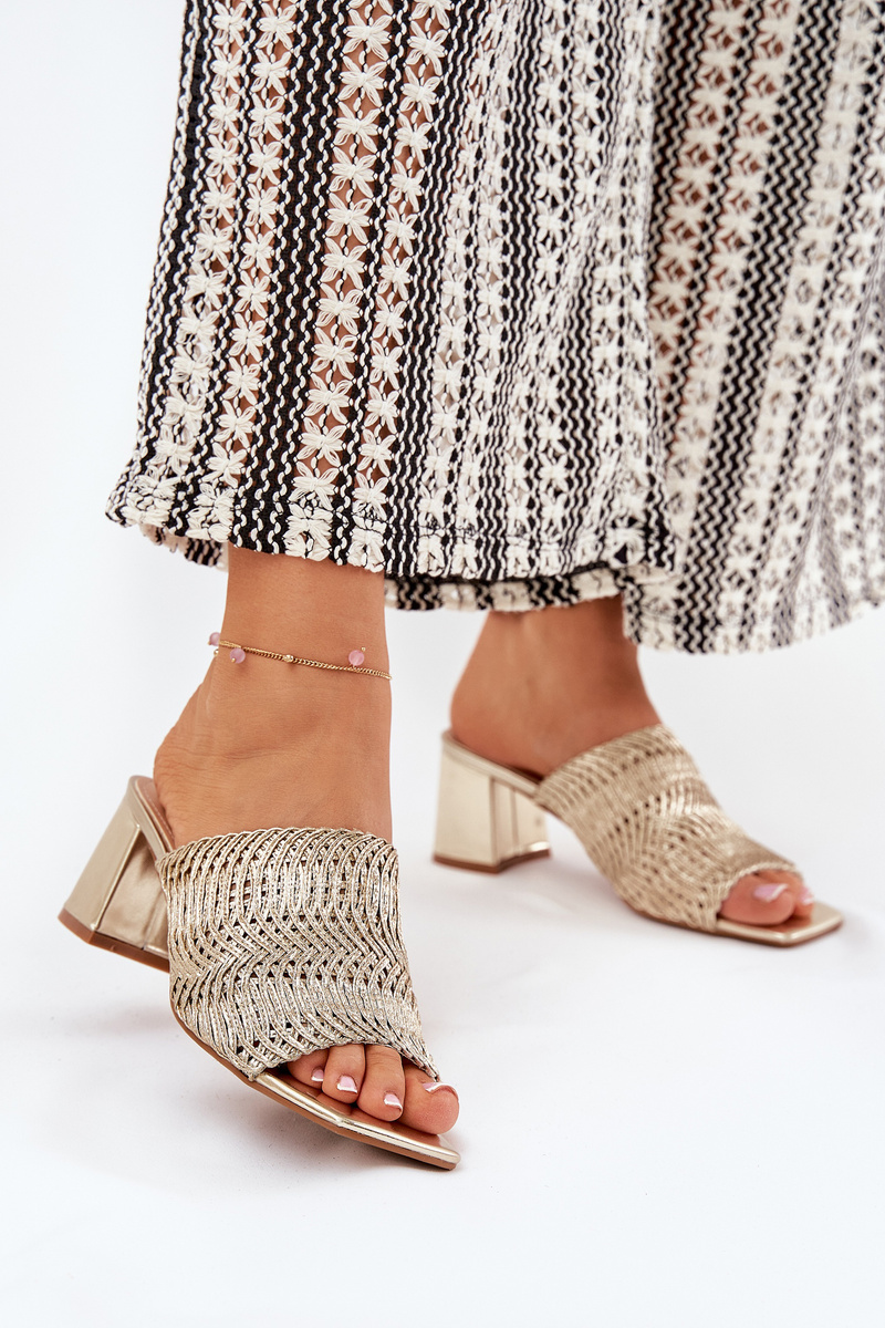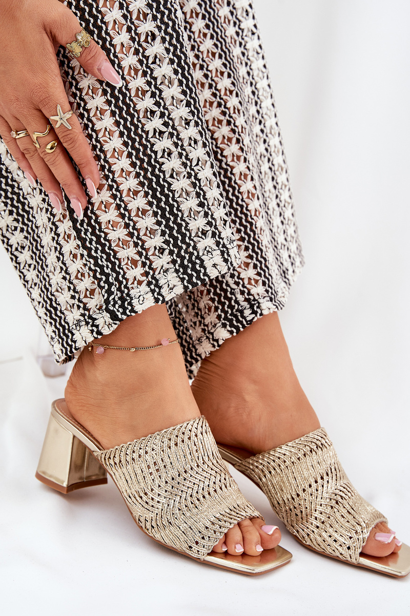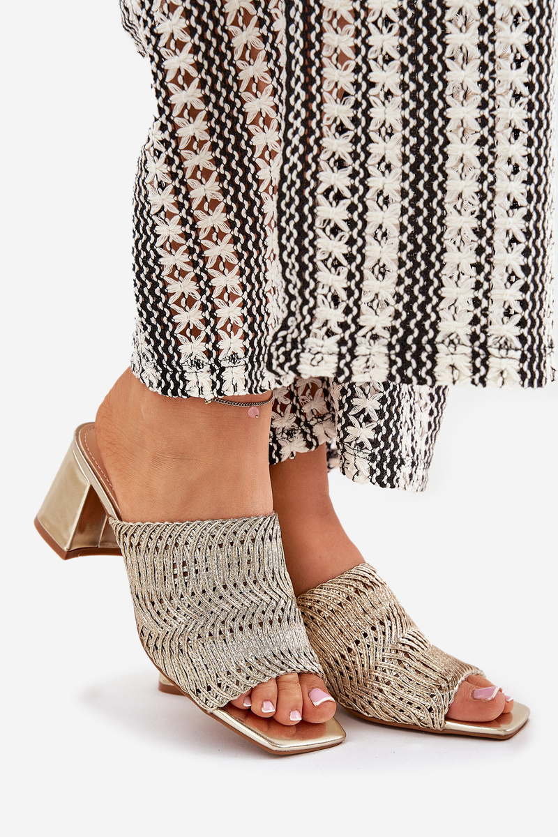 Stylish women's slides with weaving that combine a modern look with classic comfort. Set on a block heel, they provide stability. Insole made of eco-leather. The weaving adds a subtle charm, and the simple yet striking design makes them an ideal choice for summer days. They pair perfectly with both light dresses, flowing skirts, and casual pants. When choosing a size, please refer to the size chart.