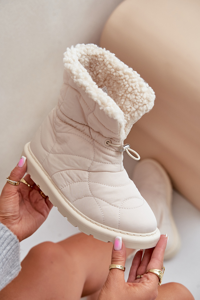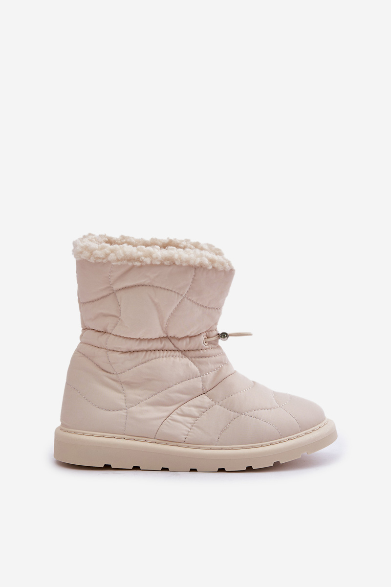 Ladies Snow Boots With Drawstring Lined With Sheepskin Light Beige Vamidra