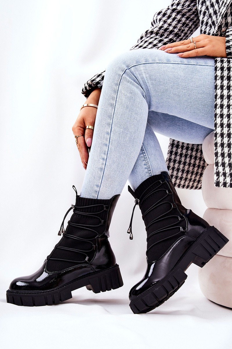 Great boots that will meet your requirements! Soft sock upper and solid sole - this model will express your character! Fashionable cut with an elastic band with a welt at the top of the upper. Made of eco leather and fabric. Soft warming in a form of fur will provide protection against the cold. A must-have! Please refer to the size chart when choosing your size