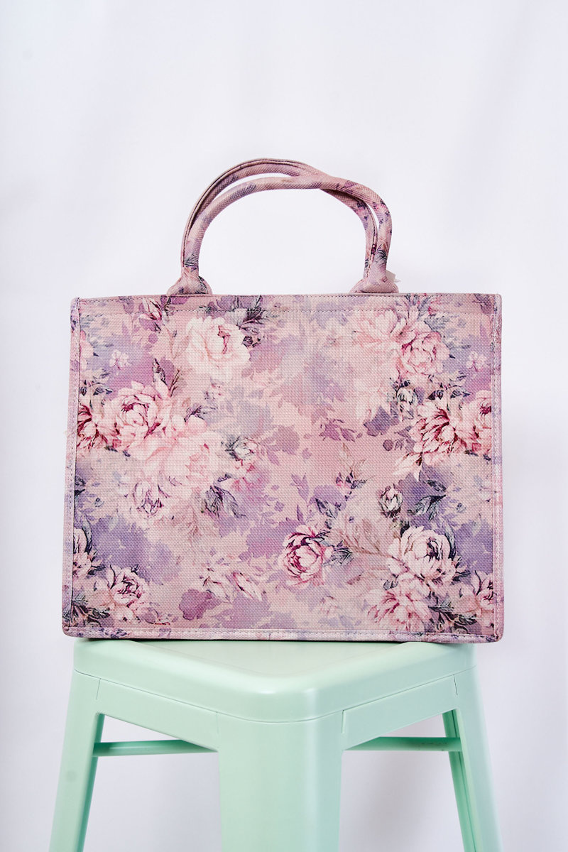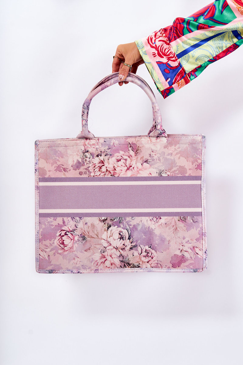 A stiff, large handbag with a beautiful pattern. The bag will be a great addition to spring and summer stylizations. Made of textile material. Composition: 50% polyester, 50% cotton. The compartment is closed with a zipper. Additionally, the bag comes with a detachable, adjustable strap. In the middle there are two smaller, open pockets and one larger with an elastic band. The bag also has a reinforced bottom inside.