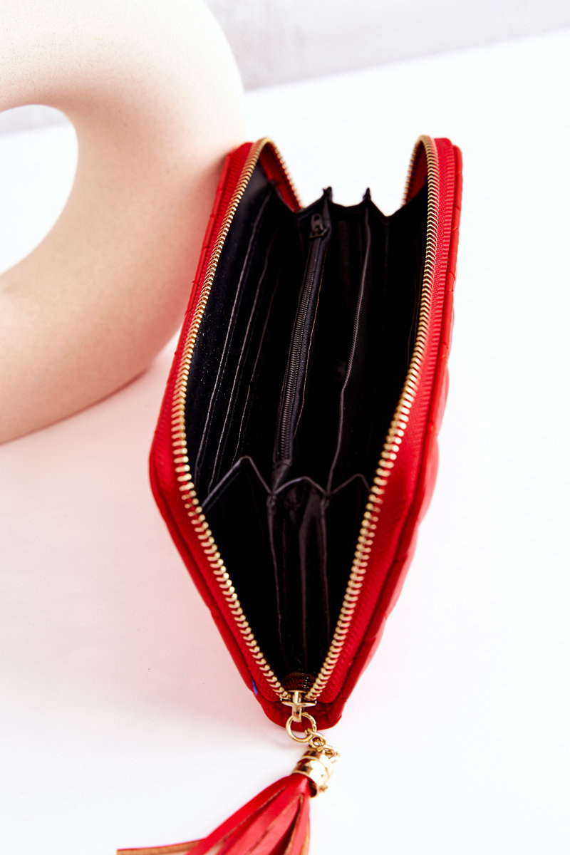 Great, large wallet with a zipper with a fringe. It has an additional strap. The wallet can accommodate coins, banknotes and has open pockets for cards and documents. It was made of ecological, quilted leather. Inside, it has three compartments with two compartments. There is also a zippered pocket. Give a gift to yourself or someone close to you!