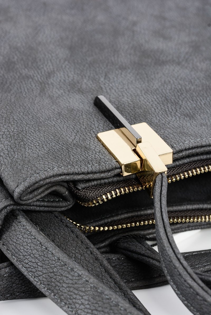 Large Grey Women's Handbag + Sachet + Mirror POLAND