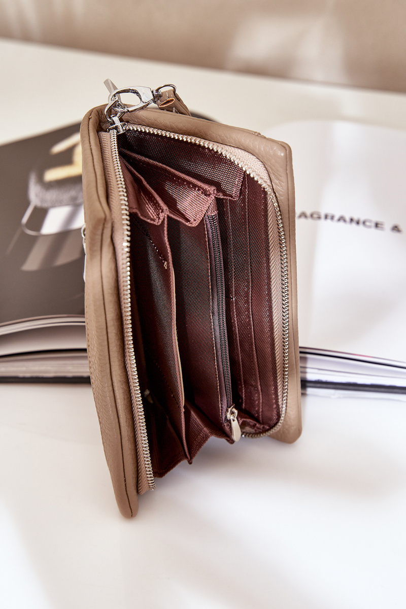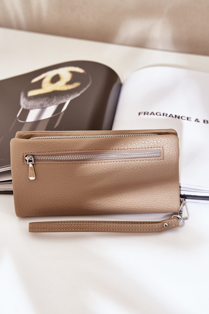 Large Ladies Wallet With Embossing Eco Leather Dark Beige Martiel
