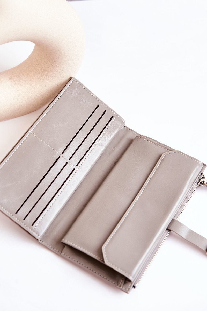 A very functional wallet made of eco leather. It has one sachet closed with a zipper and a flap closed with a magnet. Inside there are open pockets for business cards, a place for a photo and an additional sachet fastened with a press stud. You must have it, don't wait and buy it!