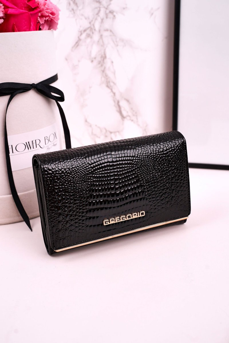 Large Leather Women's Wallet GREGORIO Shiny Black
