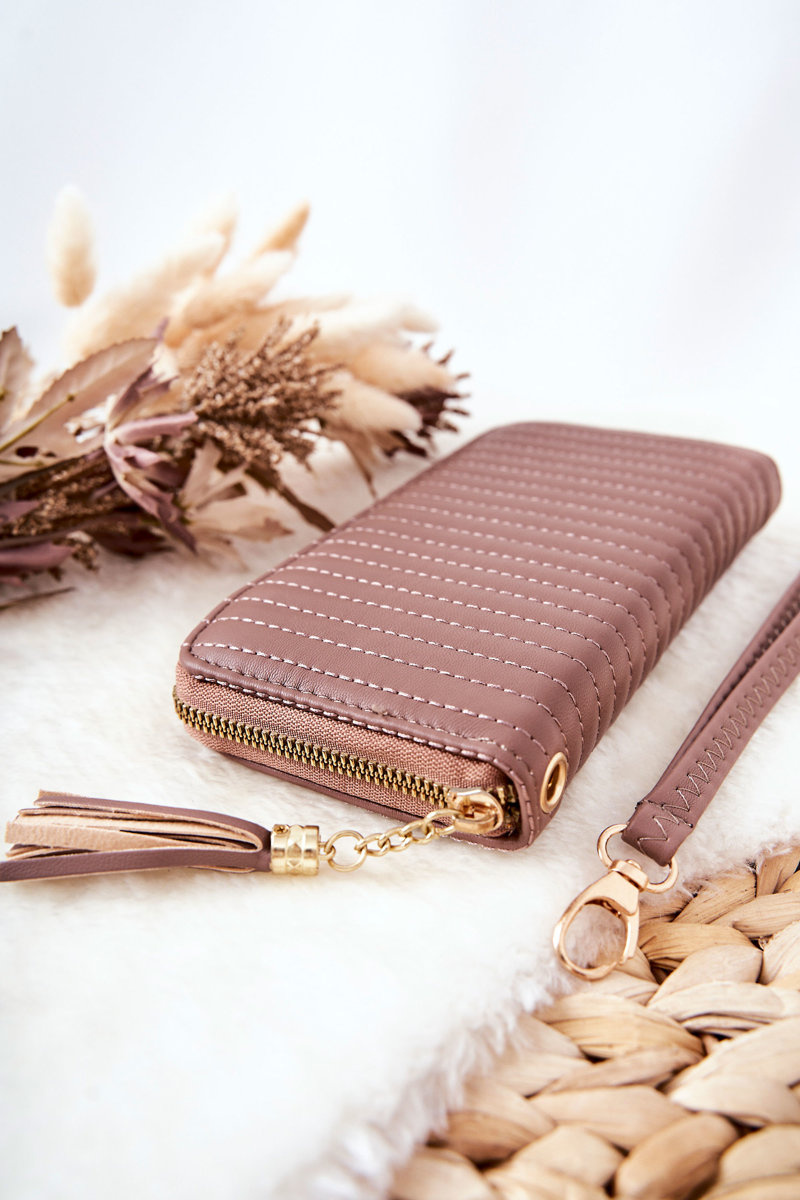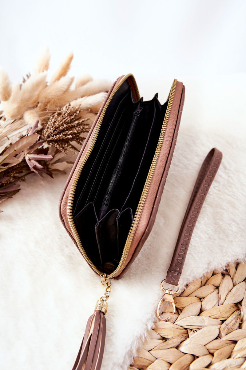 The large wallet is made of quilted eco-leather. It has a tassel at the zipper. It comes with a belt of the same colour and material. Inside the wallet there is a space for coins, notes and business cards. Check out other models from our collection! You will surely find the perfect model for yourself!
