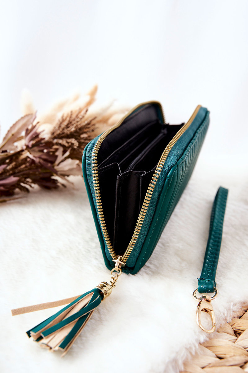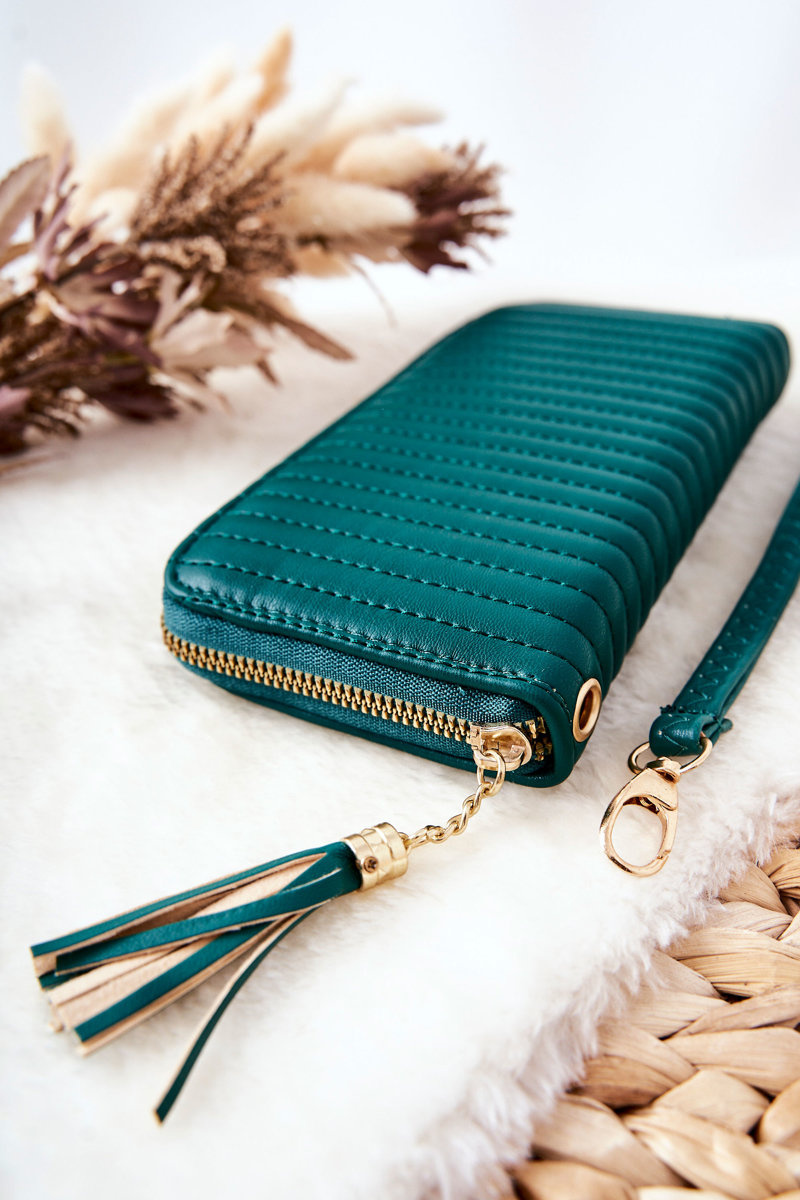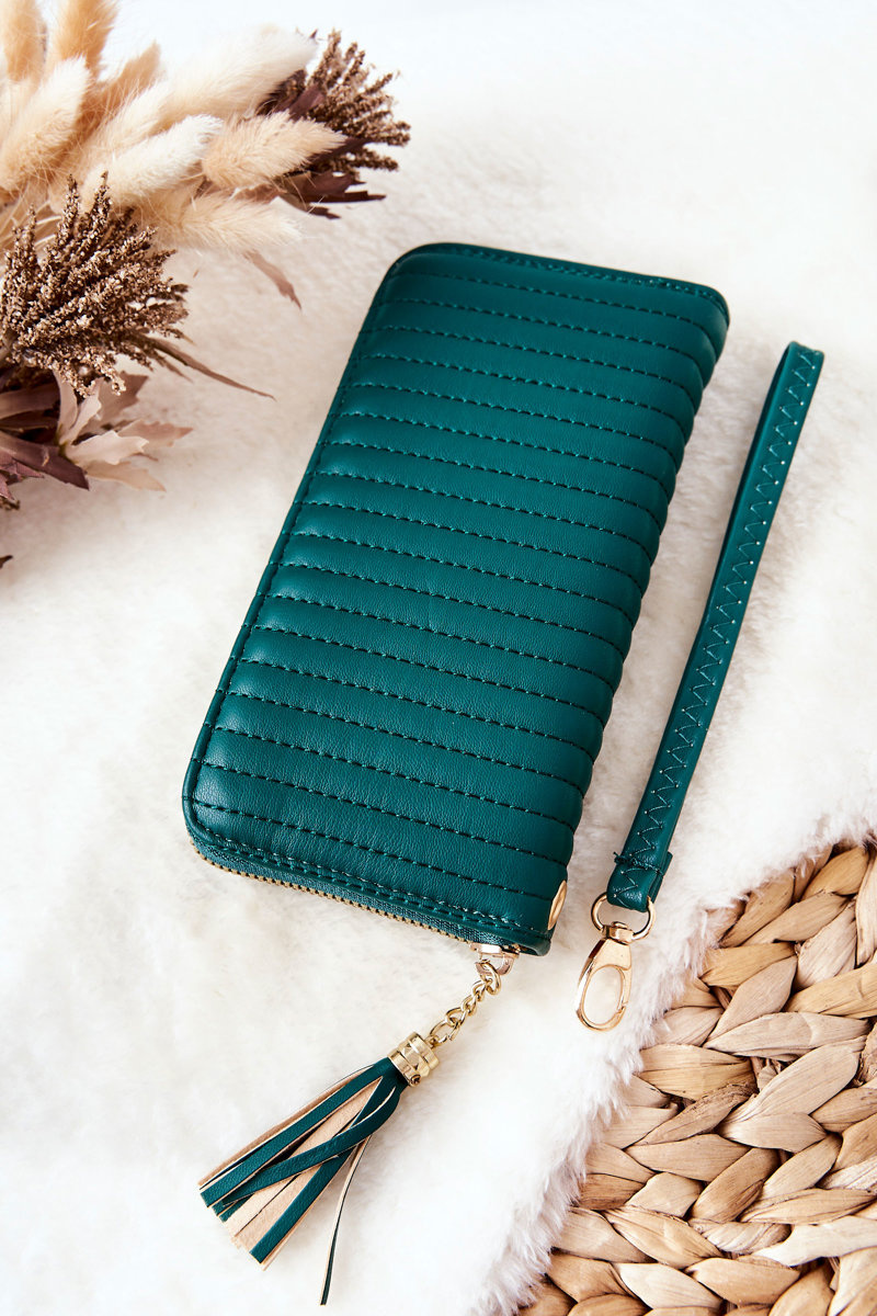 Large Quilted Wallet with Strap Green