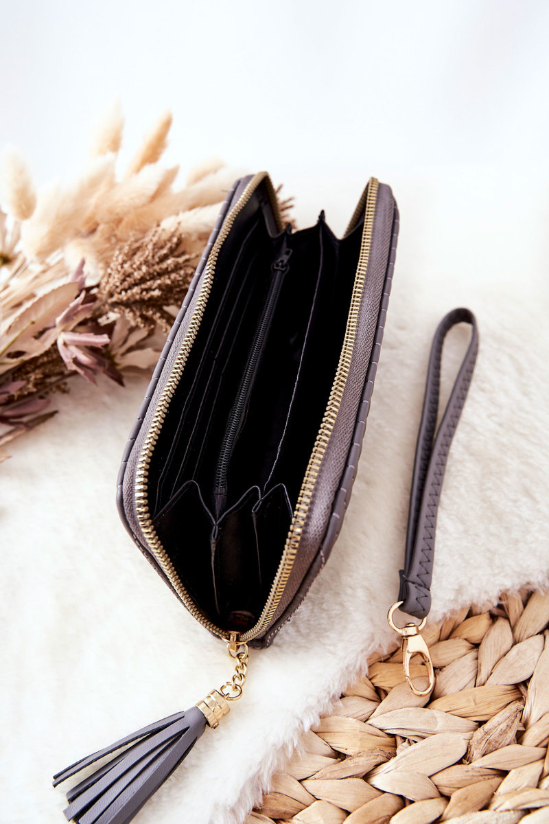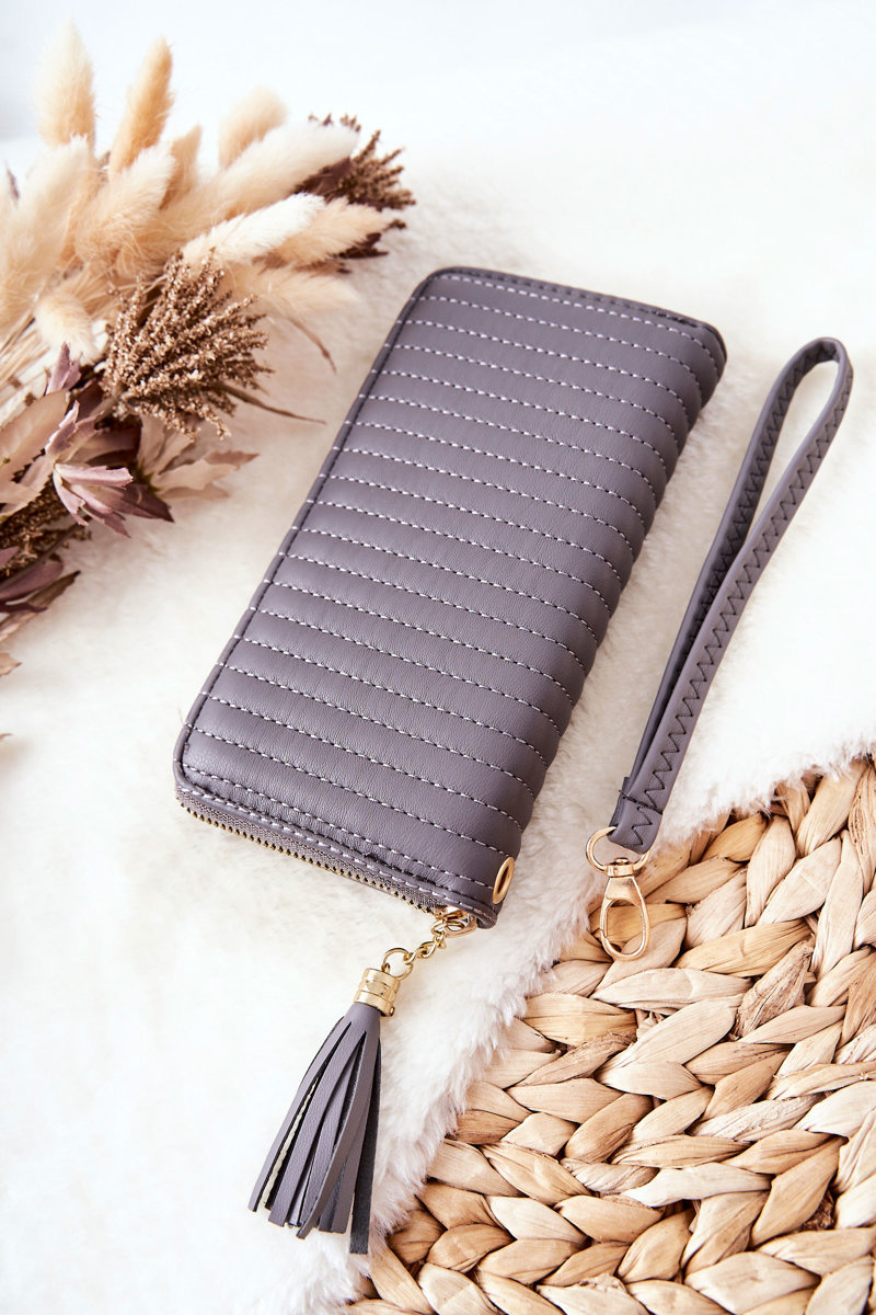 The large wallet is made of quilted eco-leather. It has a tassel at the zipper. It comes with a belt of the same colour and material. Inside the wallet there is a space for coins, notes and business cards. Check out other models from our collection! You will surely find the perfect model for yourself!