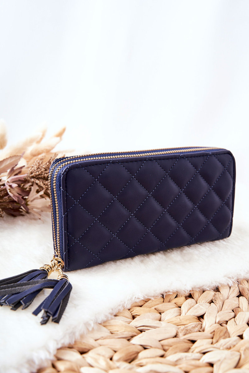 Large Quilted Wallet with Zips Navy