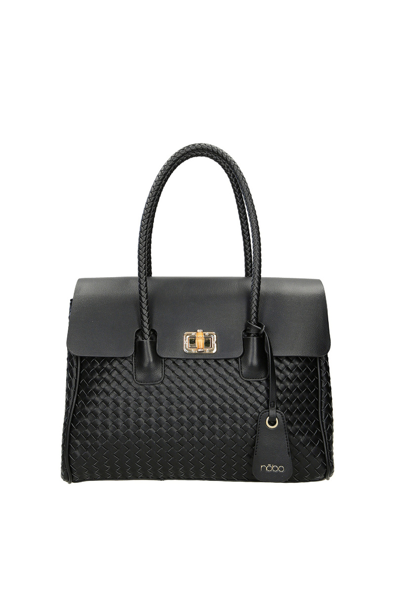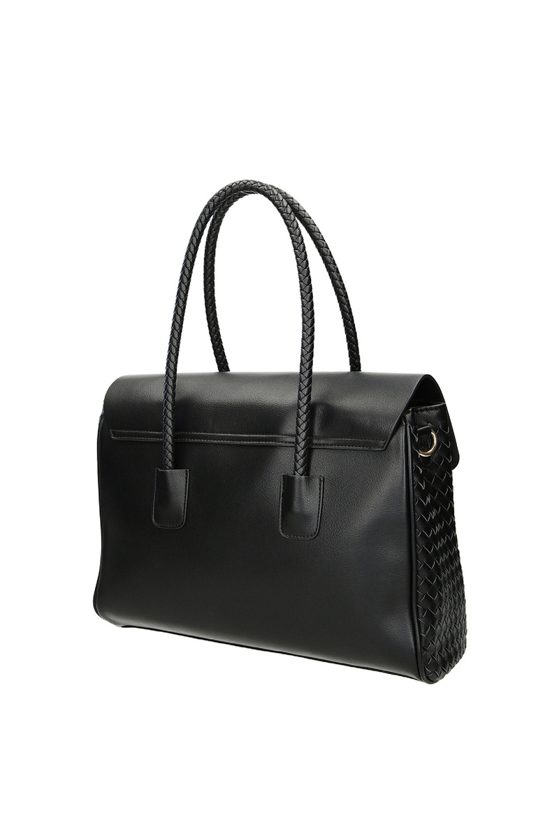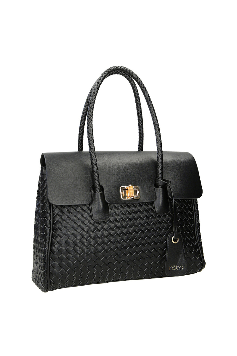 A large shoulder bag with a stylish braid on the front and on the handles. Made of eco leather. Closed with a flap with an elegant bamboo insert. The bag has long handles. Additionally, the bag comes with an adjustable, detachable strap. The interior of the bag is divided into two open chambers with additional pockets and one closed with a zipper. The bag is very roomy, it can fit A4 format. This model is stylish and practical at the same time. Suitable for many styles.